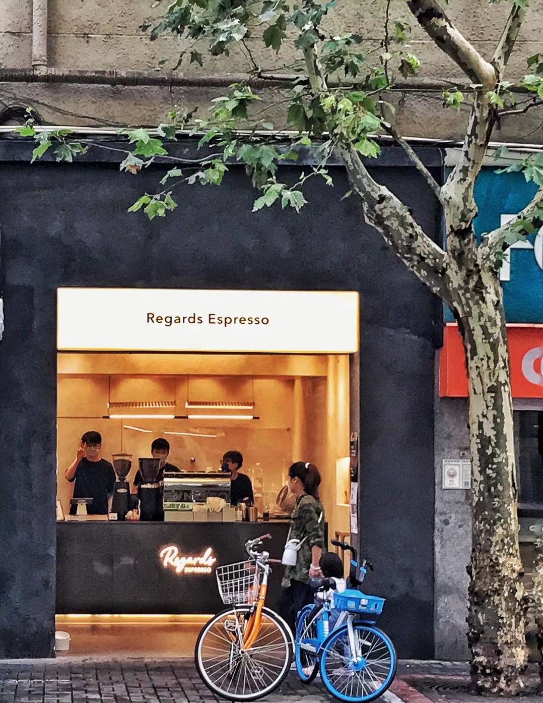 魔都任何一条马路,都散落着几家咖啡店。咖啡,当代打工人的全天候“精神支柱”,是苏醒、活力的代言词。或许,充满力量的不仅仅是咖啡,大家买的是一种氛围,例如Regards Espresso中“比耶”的店员小哥,你就可以让他顺带打包一份好心情。