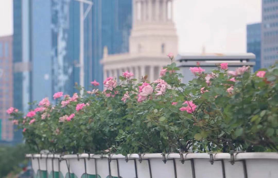 本次高架摆花是首次采用“单线+组合”的摆放形式,配花品种涉及到三角梅、月季“仙境”、比哥海棠、孔雀草和亮金女贞等。其中,外滩至延中立交、延西立交至沪青平立交以三角梅为主。