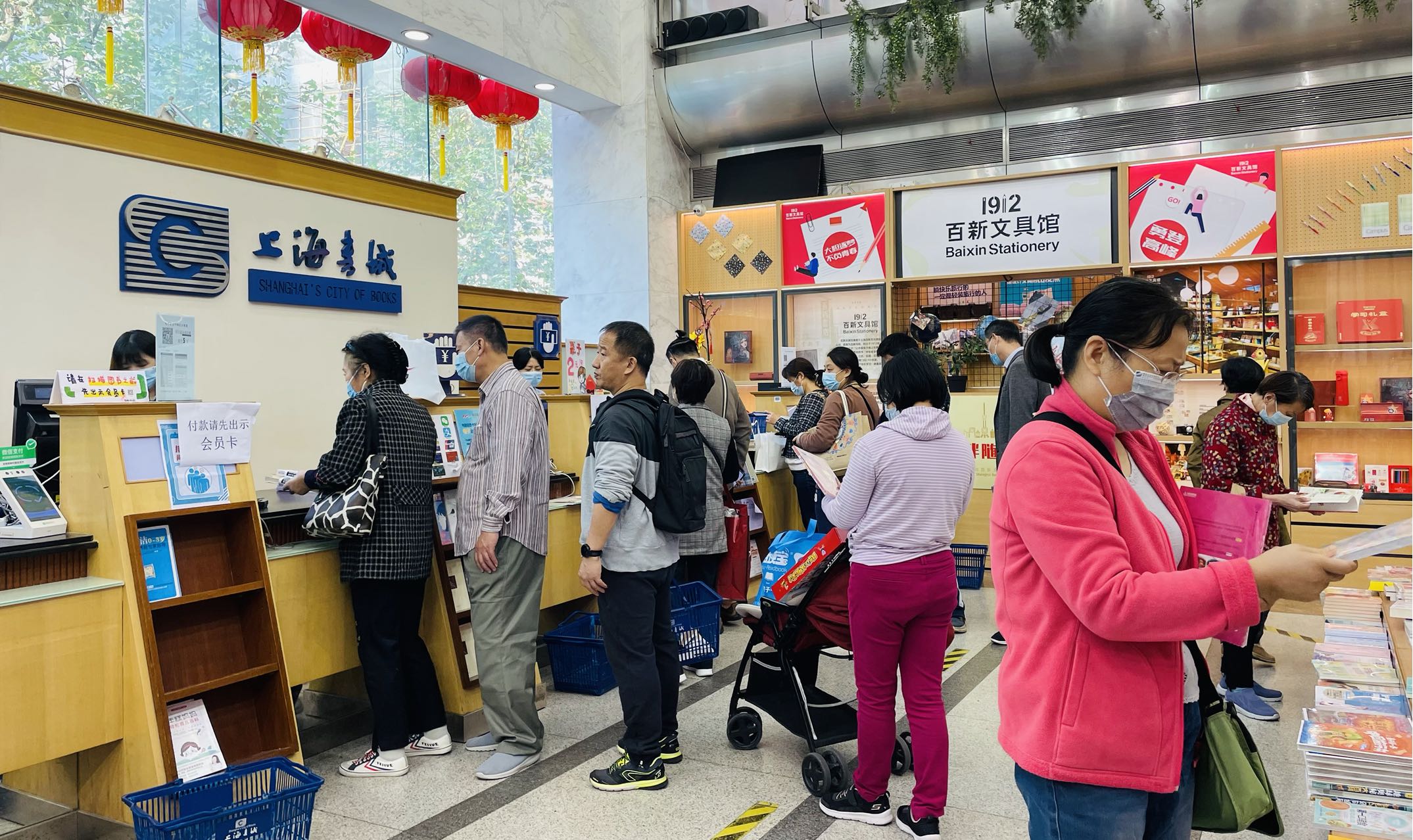 秋高气爽的下午,笔者来到了福州路465号,有不少人在门口排队,打开健康码量好体温就可以进去了。在一楼收银台,可以看到排队结账的人不少。