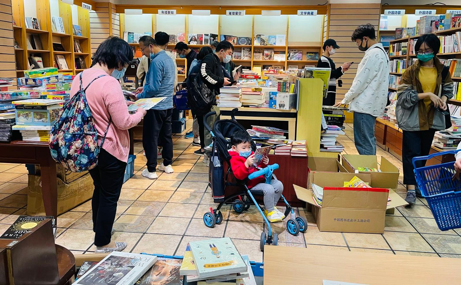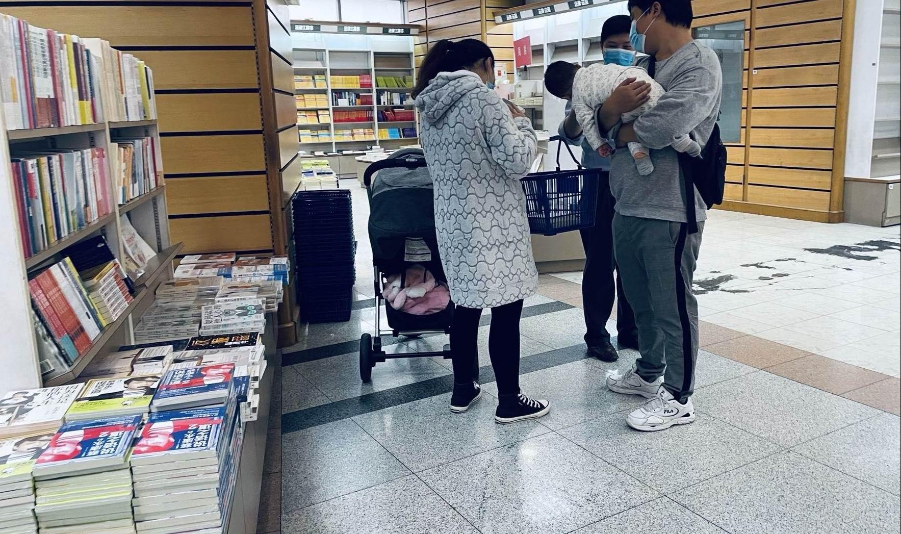 也有温馨的亲子时间——有妈妈带着孩子一起挑书的。