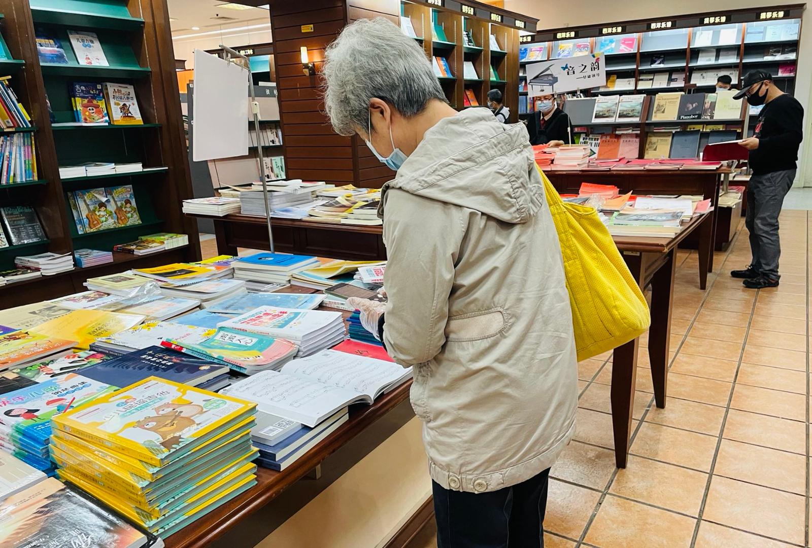 在7楼碰到的邵女士在非常认真地翻看一本钢琴谱,70多岁的她退休后开始学钢琴,以前就经常到这里来找琴谱,这次也是趁着暂别前的机会来看看。