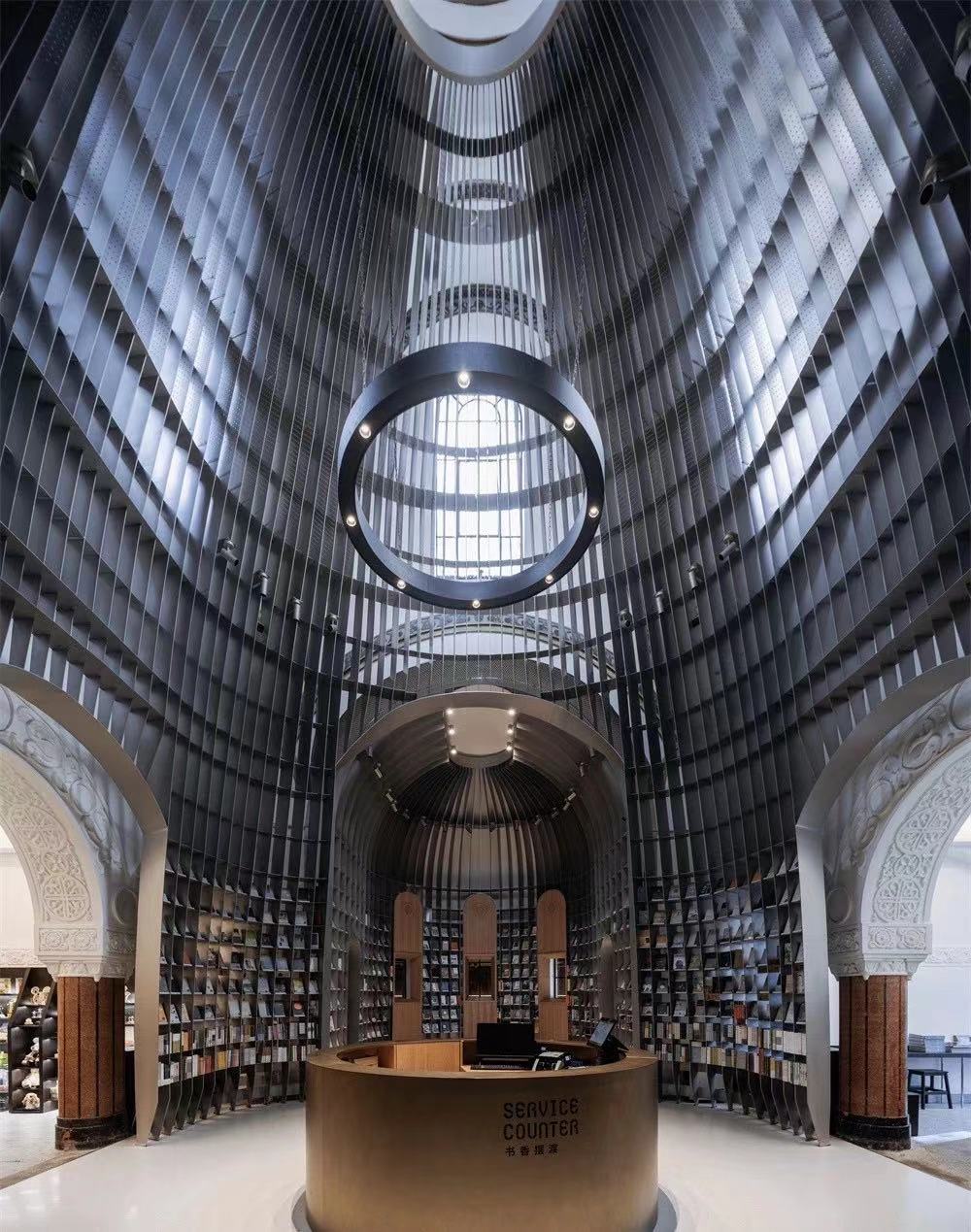 书店的设计理念是“教堂中的教堂”,拥有悠久历史的原建教堂是上句,而内部不锈钢金属板的书架教堂具备着纯粹力量,作为下句。书店特别面向热爱诗歌的人群,以优质的选书和服务,辐射全球各地游客、城市爱书人,为爱诗的读者提供丰富的文化体验。