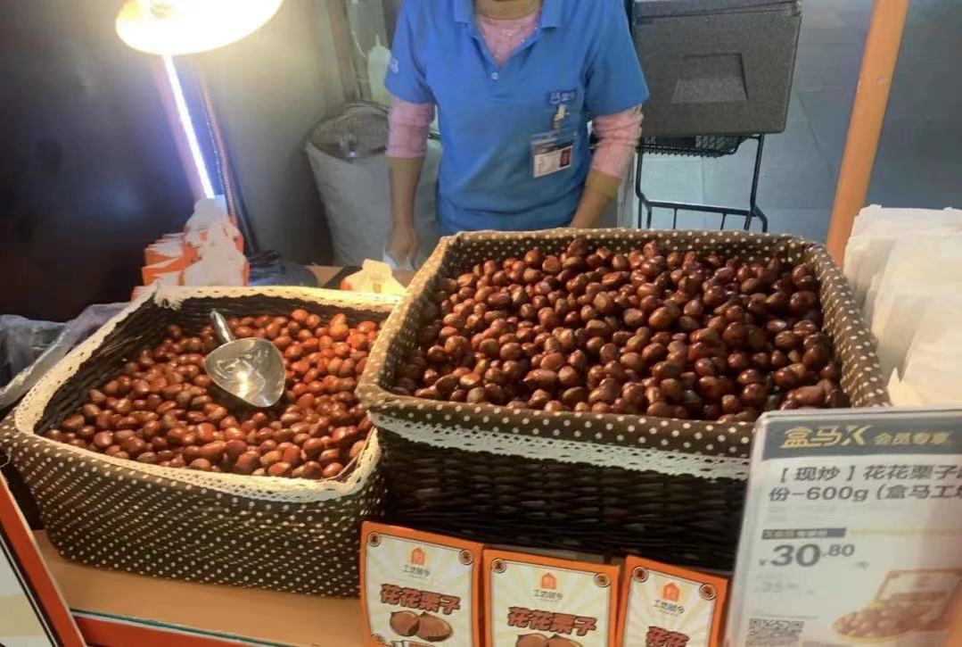 盒马做“花花栗子”已经有四年了,将迁西产地的栗子带入到千万盒区房家庭。