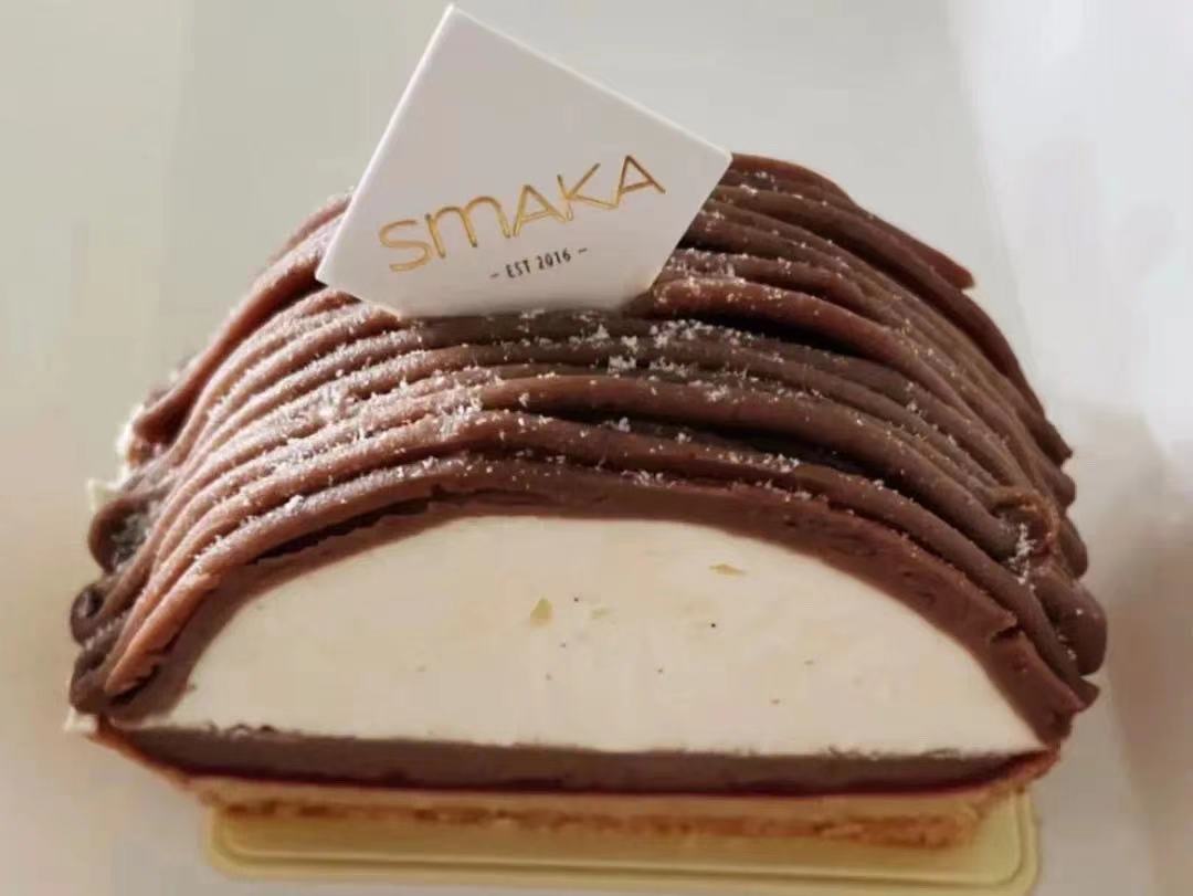 SMAKA是一家瑞典甜品店,来这里的顾客大部分是被栗子蛋糕吸引来的。栗子泥浓郁醇香,奶油口感细腻,还有种淡淡香草味。蛋糕里的栗子泥与奶油比例恰好,风味十足。