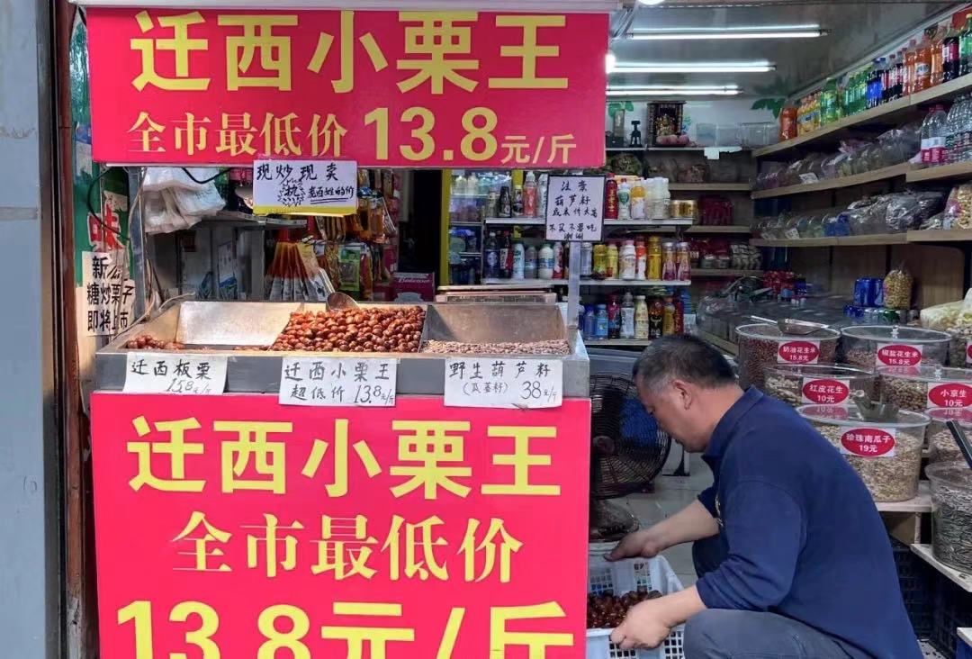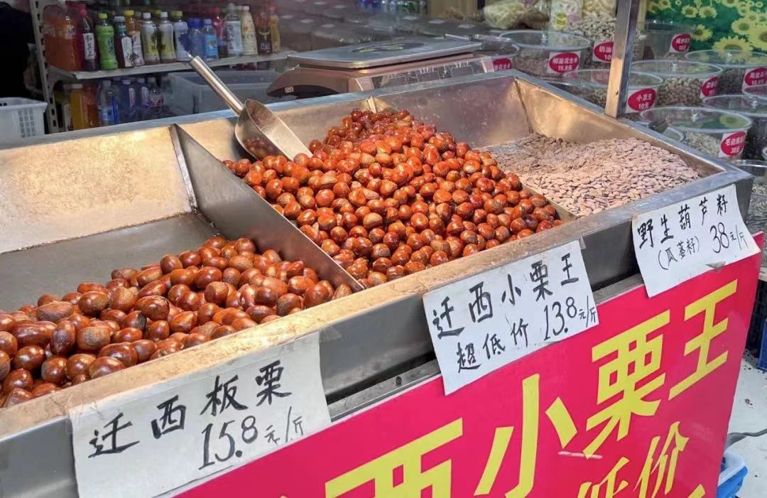 是不是全市最低价还有待商榷,但是小编发现他家的栗子个头可是真不小,如果路过的食客不妨一试哦!