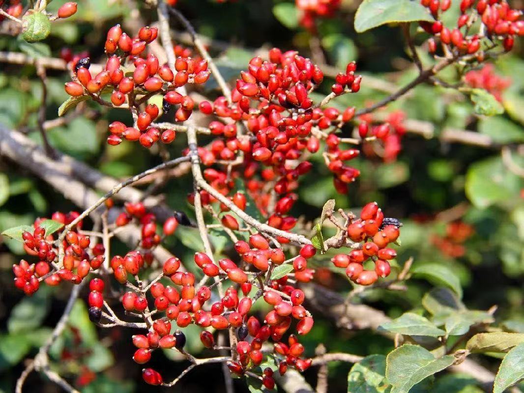南天竹、火棘、构骨的果实成熟时都为红色,且鸟类喜爱取食。动物园的绿化工作者在进行植物配置时,特别选择了这些能被鸟类取食的植物,鸟儿们在饱腹的同时也为公园病虫害防治做贡献,如戴胜、乌鸫、灰喜鹊、白头翁等。