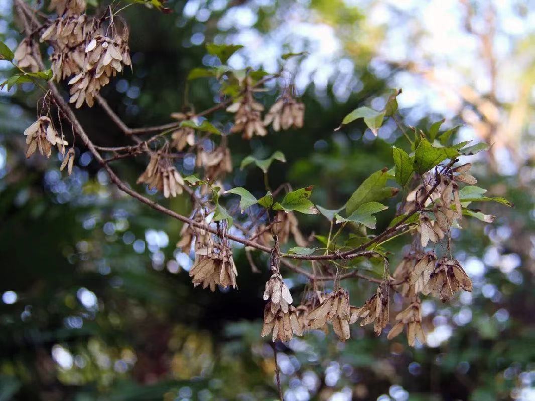 三角槭的果实带着2个小翅膀,微风吹过,翩翩飞翔。