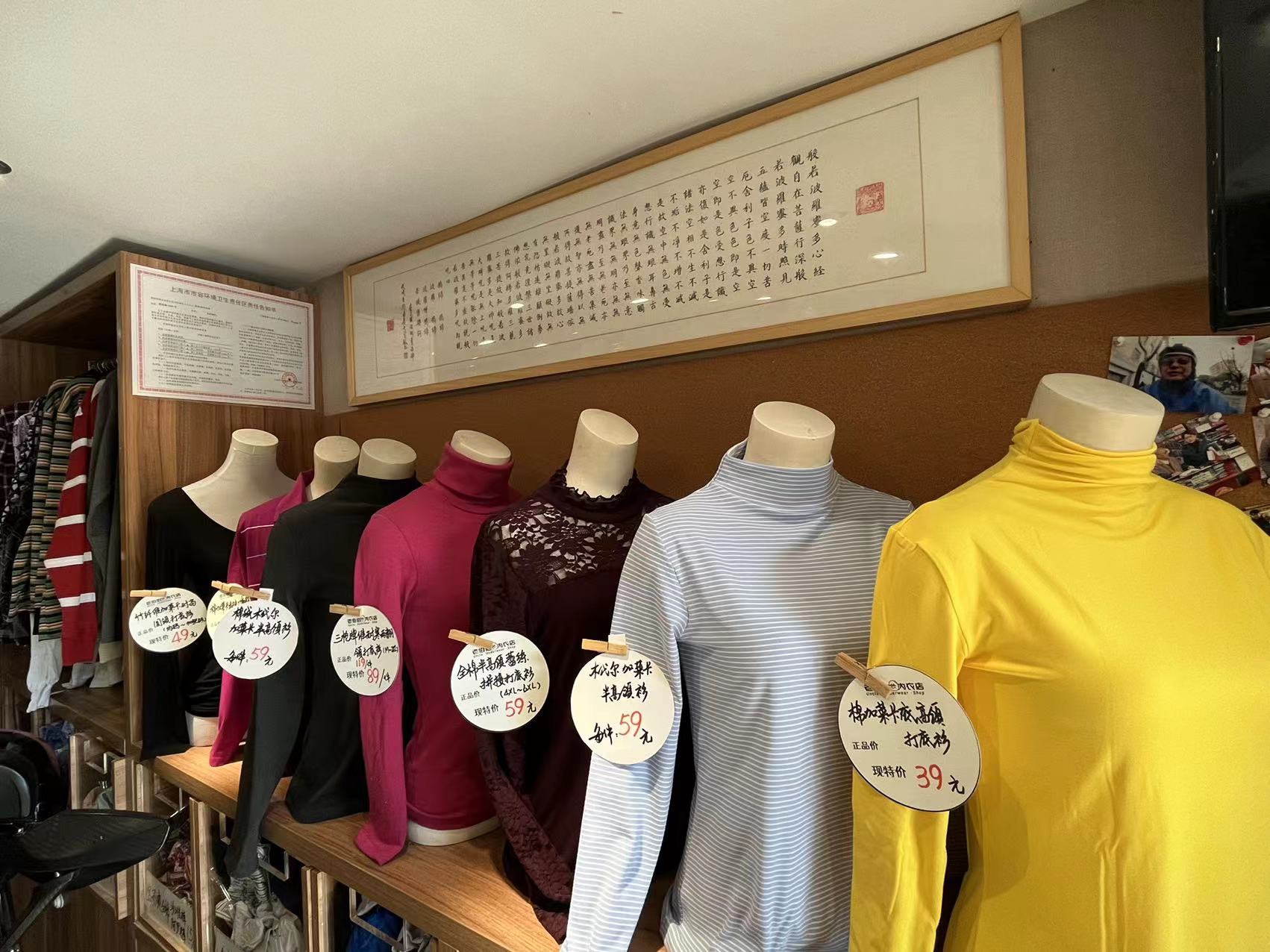 一位前来改衣服的阿姨说,以前叫裁缝店,这家店开了好多好多年了。“前几天给女儿买了两套衣服太大了,拿来店里改改,老板老板娘非常热情,很快就改好了,很满意!”