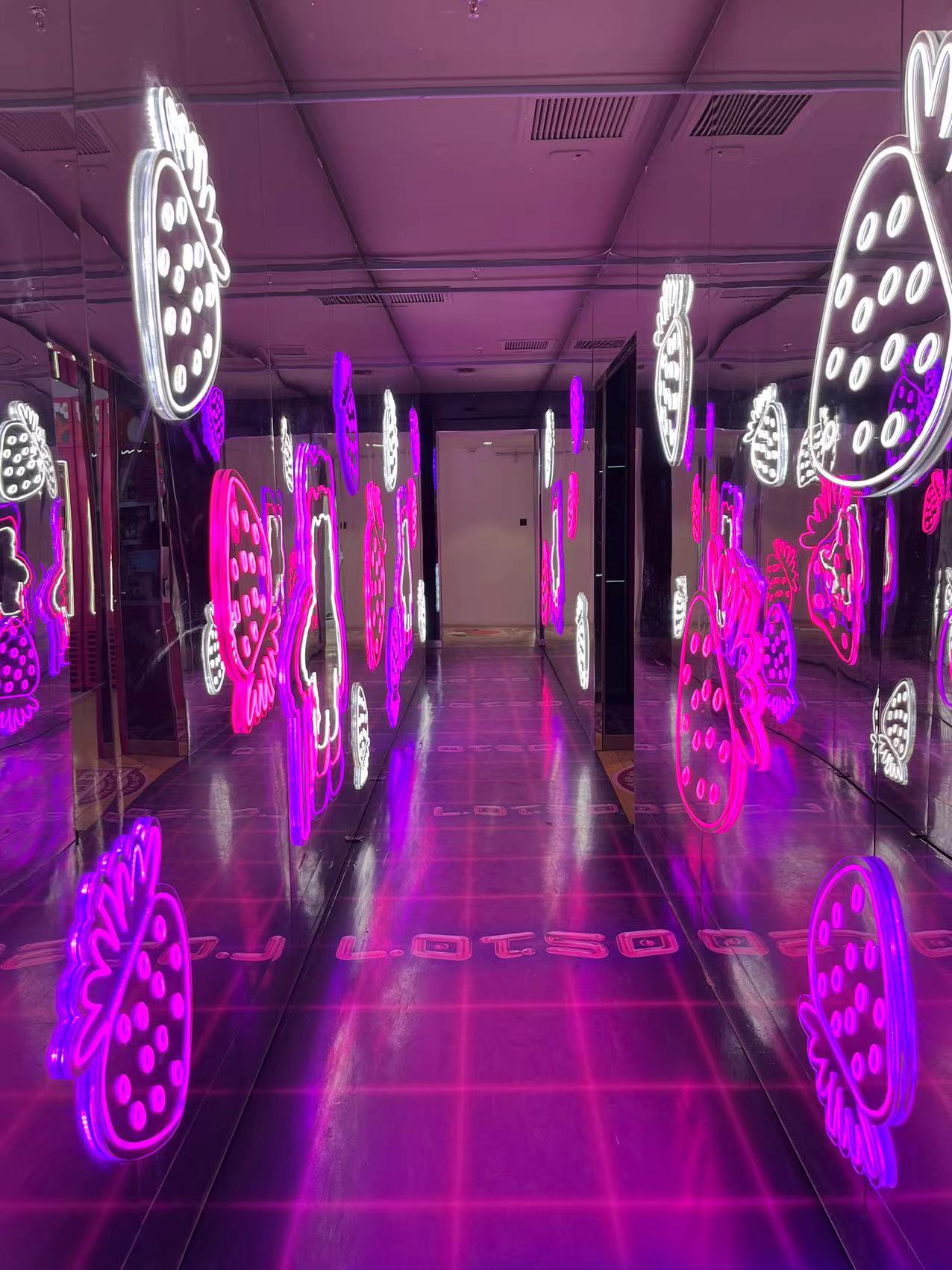 穿过草莓霓虹波通道走向二楼,阳光洒满的露台堪称室外小花园,地上铺满沙石,周边布满草莓熊道具……引来不少年轻人陆续前来打卡拍照,还有两位打扮精致摩登的阿姨也不断变换姿势,拿起相机一顿“咔咔咔”。