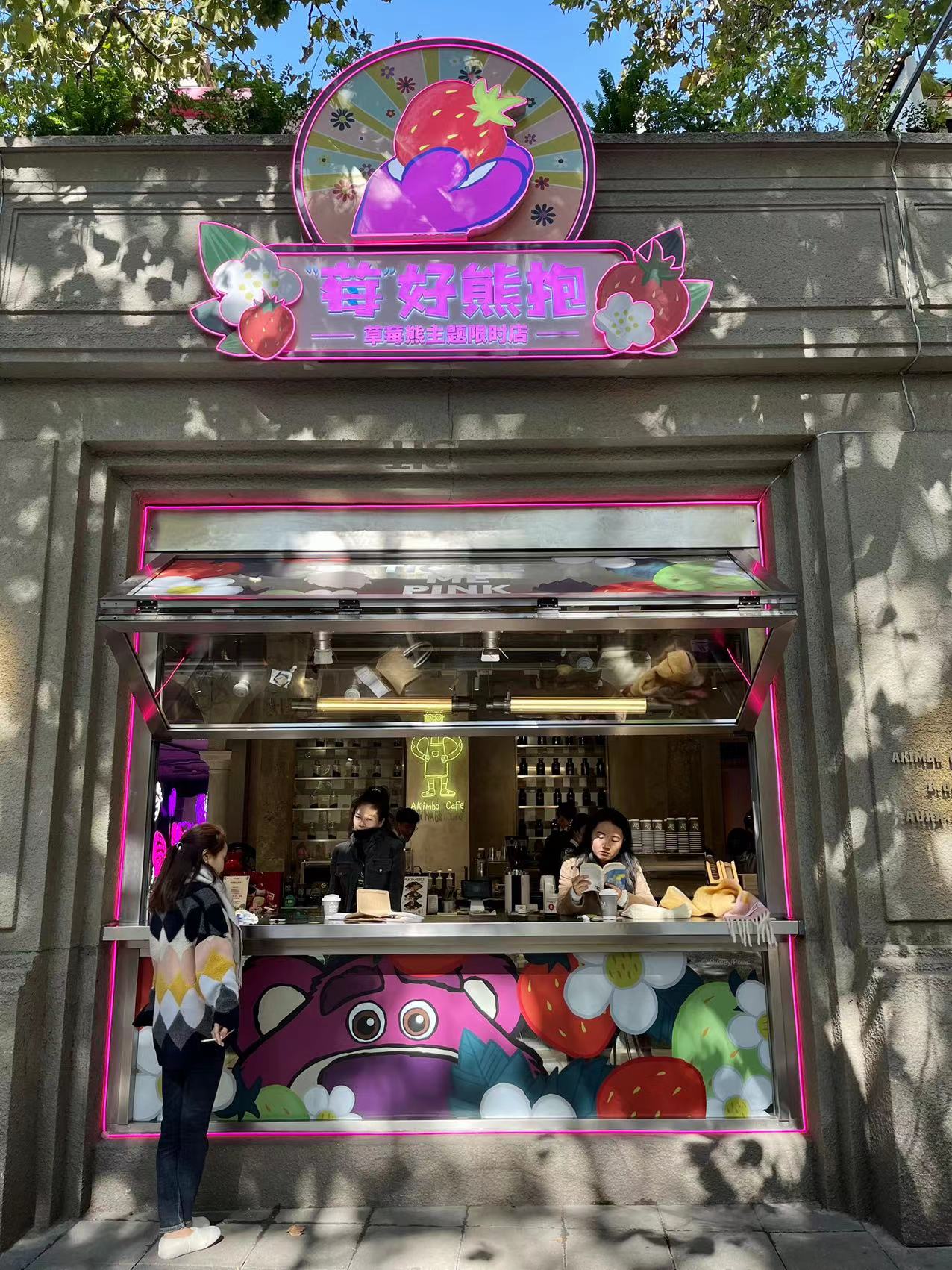 信步前往,一股甜丝丝的草莓气息扑面而来,迪士尼迷人的反派角色“草莓熊”也来愚园路了!