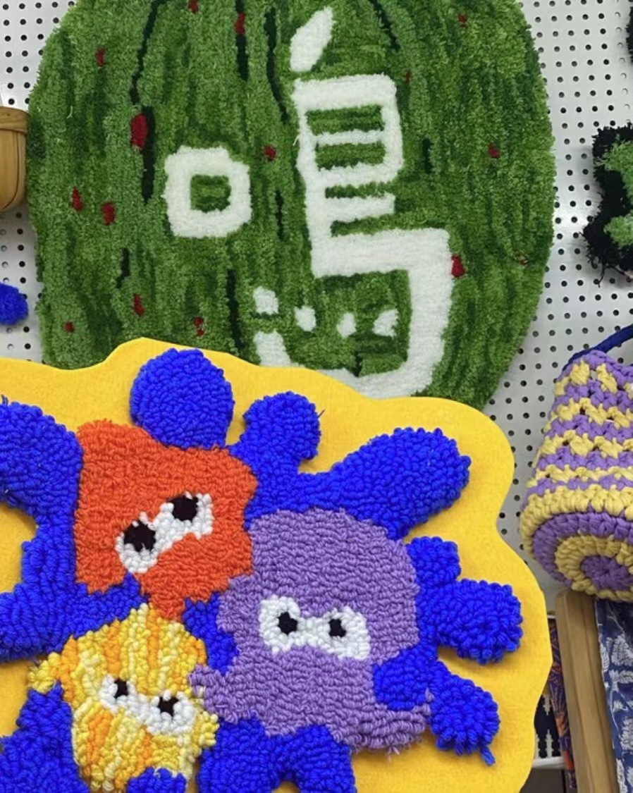 鸣空间是一家tufting店,这是一种全新的手工体验,将各类图案通过毛线用簇绒枪在簇绒底布上展示出来的创作,大到地毯、装饰画,小到杯垫、胸针,都可以通过tufting创作出来,既减压又好玩,成为不少年轻人出门约会的新选项。