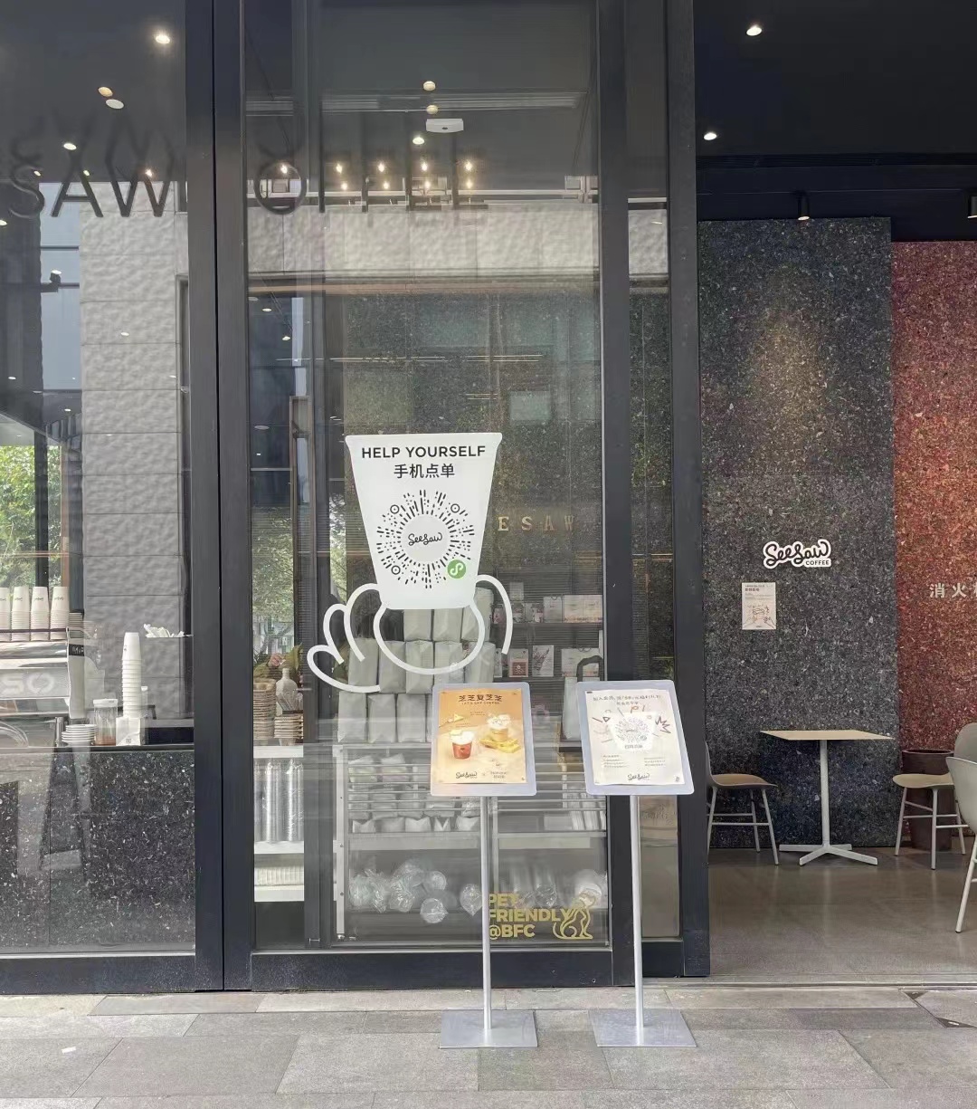近年来,星巴克在国内布局宠物友好门店,最早的两家在2018年落户深圳和成都,不久之后在建国西路开出本市第一家门店。这些门店带有社区店属性,旨在为就近的大型社区提供宠物饮品服务。截至目前,上海已拥有超过20家宠物友好店。如何在沪上800多家星巴克中找到它们呢?其实很简单,认准“爪爪星萌友”就能一步搞定。坐落于老西门商圈的星巴克·复兴荟店门口就竖着这样一块醒目的立牌。