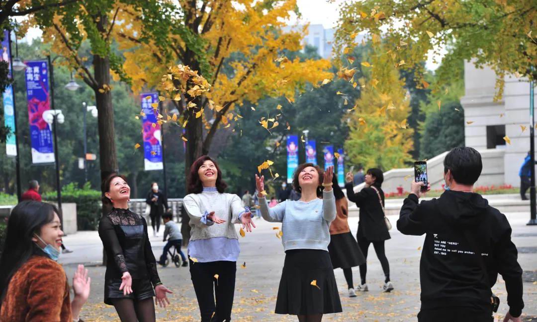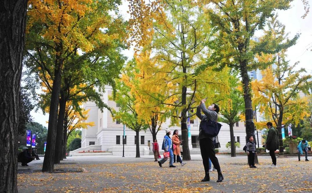 在上海音乐厅的银杏大道上,已满地皆是金黄色的“鱼鳞甲”,吸引不少市民游客纷纷来这里打卡,与都市中的秋色同框定格。