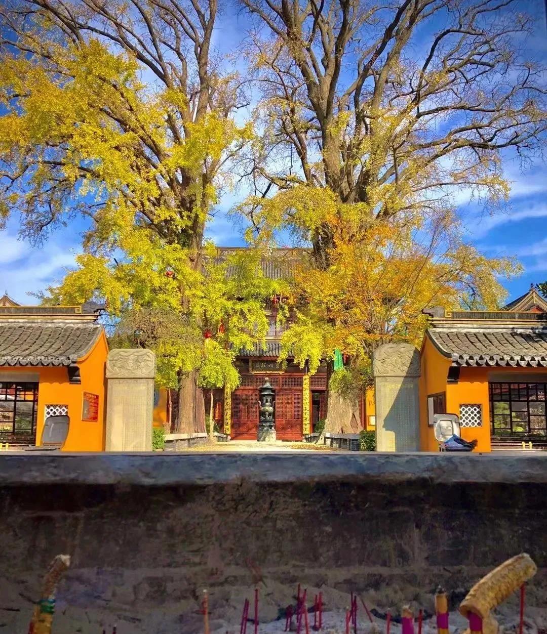 在金泽古镇的颐浩禅寺内,有一株南宋古银杏,700多年来默默地守护着千年古刹。这几日古寺内的银杏还未完全黄透,这几天应该就能领略满地灿金的醉人景象。