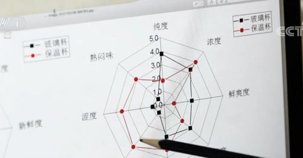 实验人员选用了同等分量的两份绿茶,分别放入保温杯和玻璃杯中,对冲泡5min、30min、1h、2h,3h后的2份茶汤进行分析。