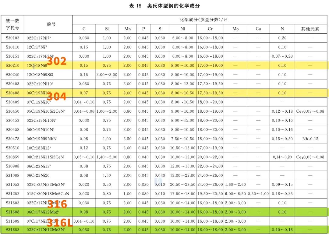 其中,12Cr18Ni9、06Cr19Ni10即我们常说的302、304不锈钢(美标牌号)。