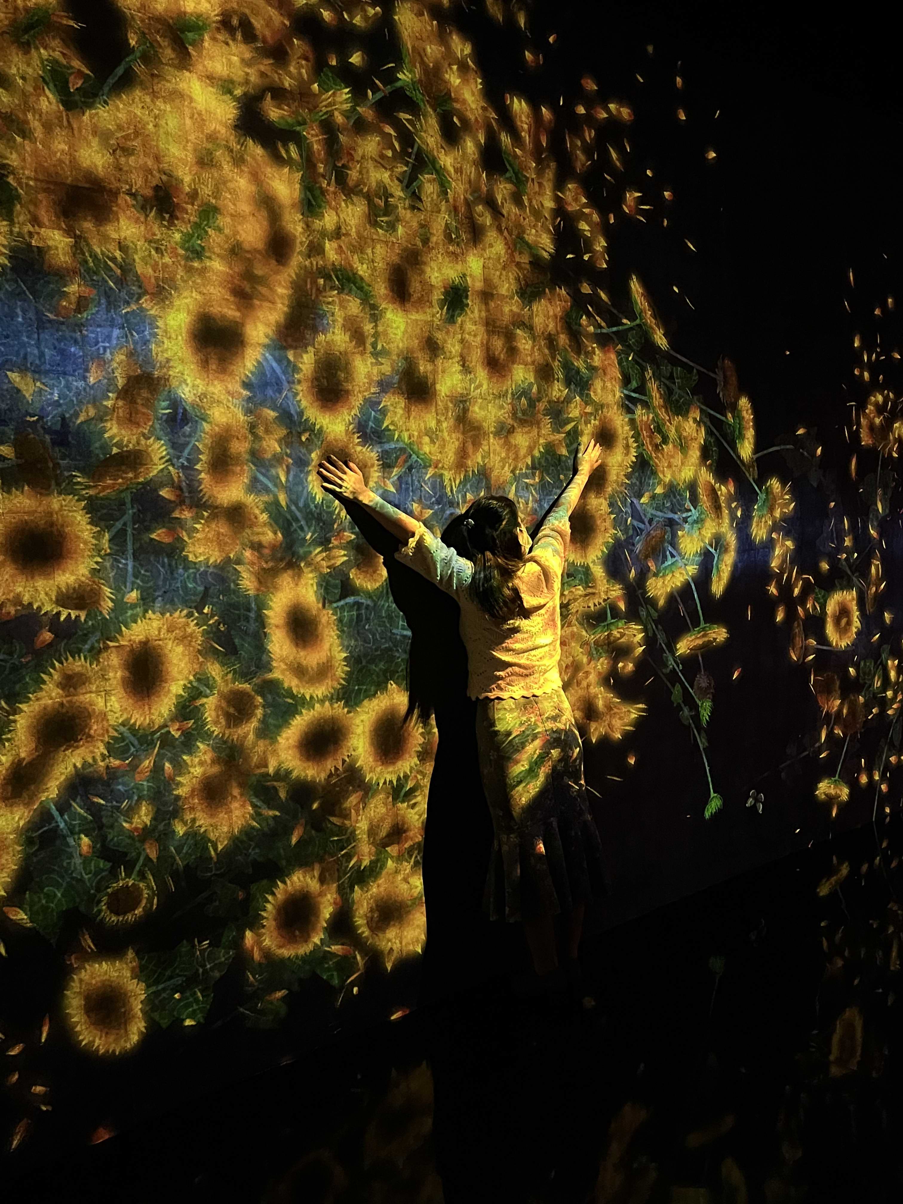此前,沉浸式大展在国内刚刚火起来的时候,笔者就没闲着。例如,草间弥生运用镜像特效创作的《无限境屋》系列、余德耀美术馆的《雨屋》、“不朽的梵高”感应艺术大展……逐渐风靡起来的沉浸式艺术展览,普遍强调互动性、绚丽的场景布置、极具噱头的主题。但是,有多少人会思考展览背后的美学内涵和人文关照呢,策展团队能够通过作品传达多少艺术理念和精神价值呢。例如本次展览,很多人沉浸在“黑盒子”+投影的高科技里,几个小时,感官的刺激达到顶峰,手机空间里又增加了许多照片和视频,但是发完酷炫的朋友圈之后,对策展理念和作品创作的思考能有多少呢。传说要展出三年的项目,除了能靠美图圈粉,是不是还能让人有更多获得~