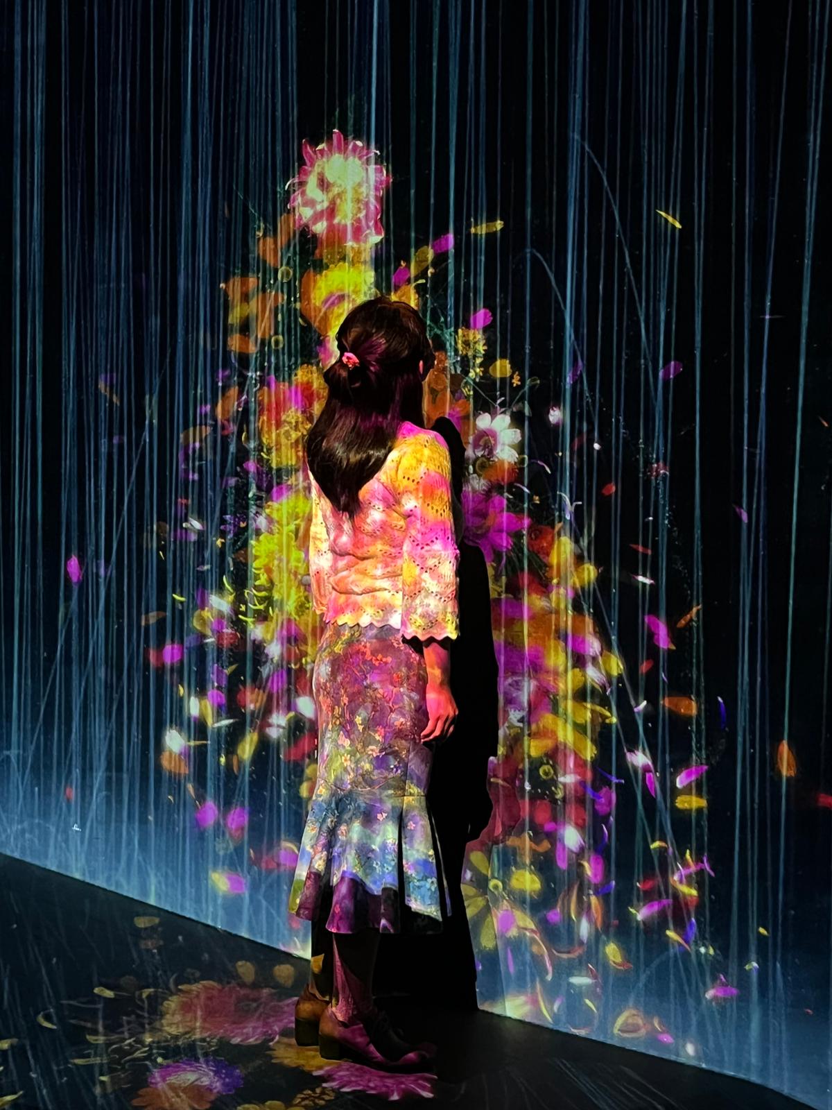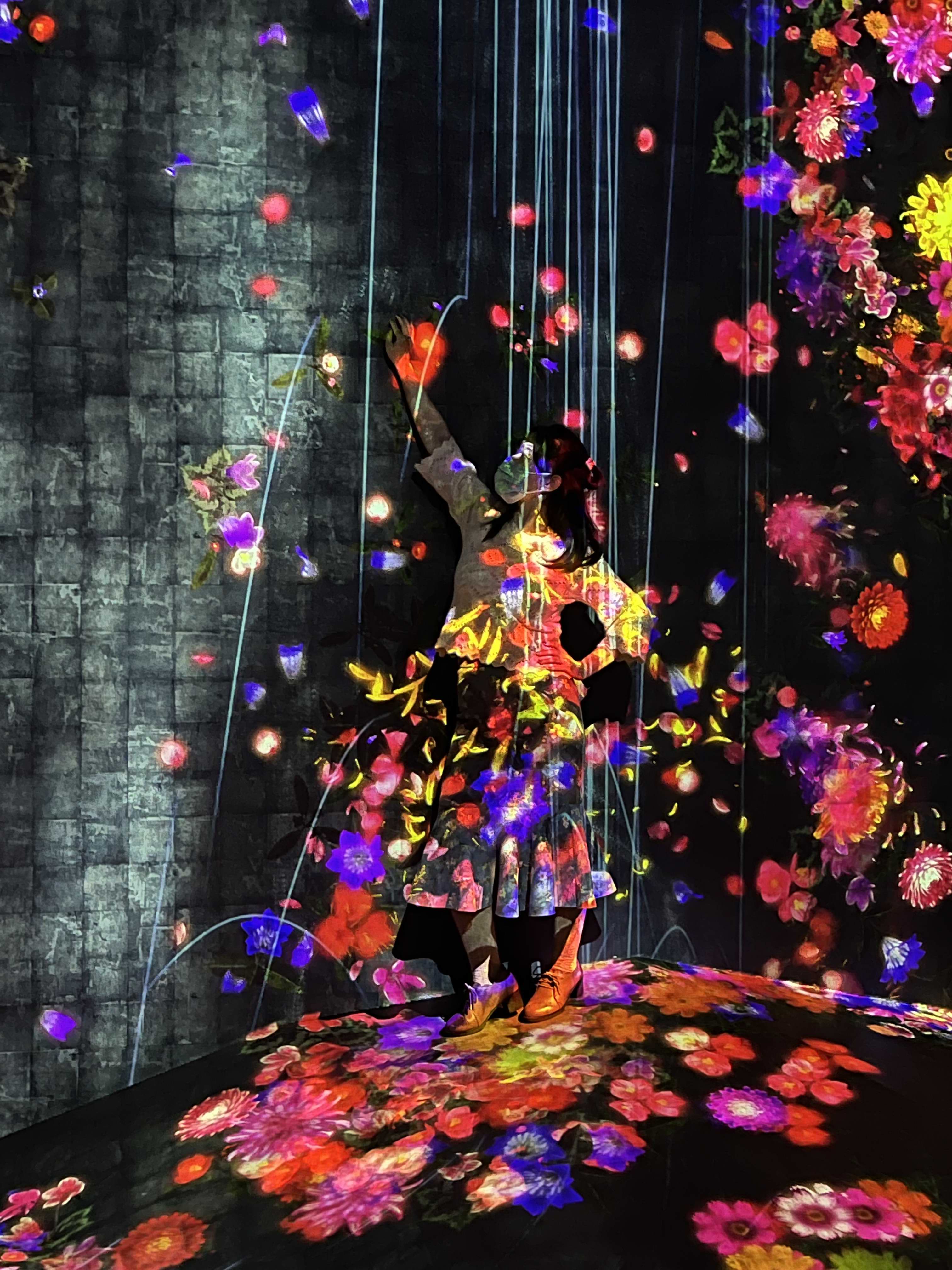 呼应灯森林,据说是teamLab最著名的作品,现场布置了大约1500盏错落有致的灯,灯光颜色整体不断变化。