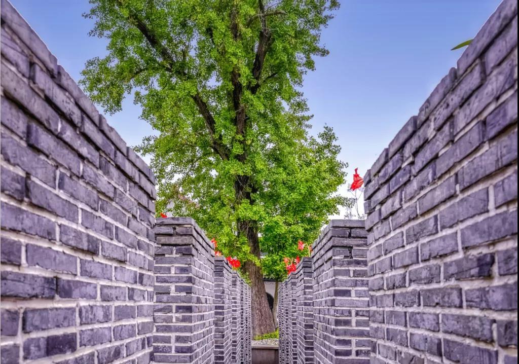 青砖砌成的14根柱子,两列分布,恰似屏风的高度,将内院和外院隔开。