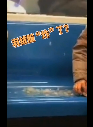 近日,一女孩在乘坐地铁坐下的瞬间,身上羽绒服的一角“嘭”的一声突然炸裂!