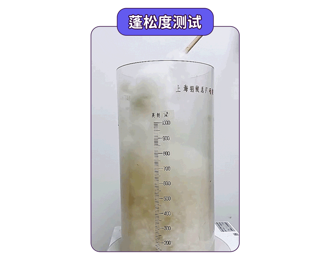 蓬松度是指在一定直径容器内,一定量的羽绒样品在规定压力下所占的体积,它是度量羽绒制品保暖程度的重要指标。