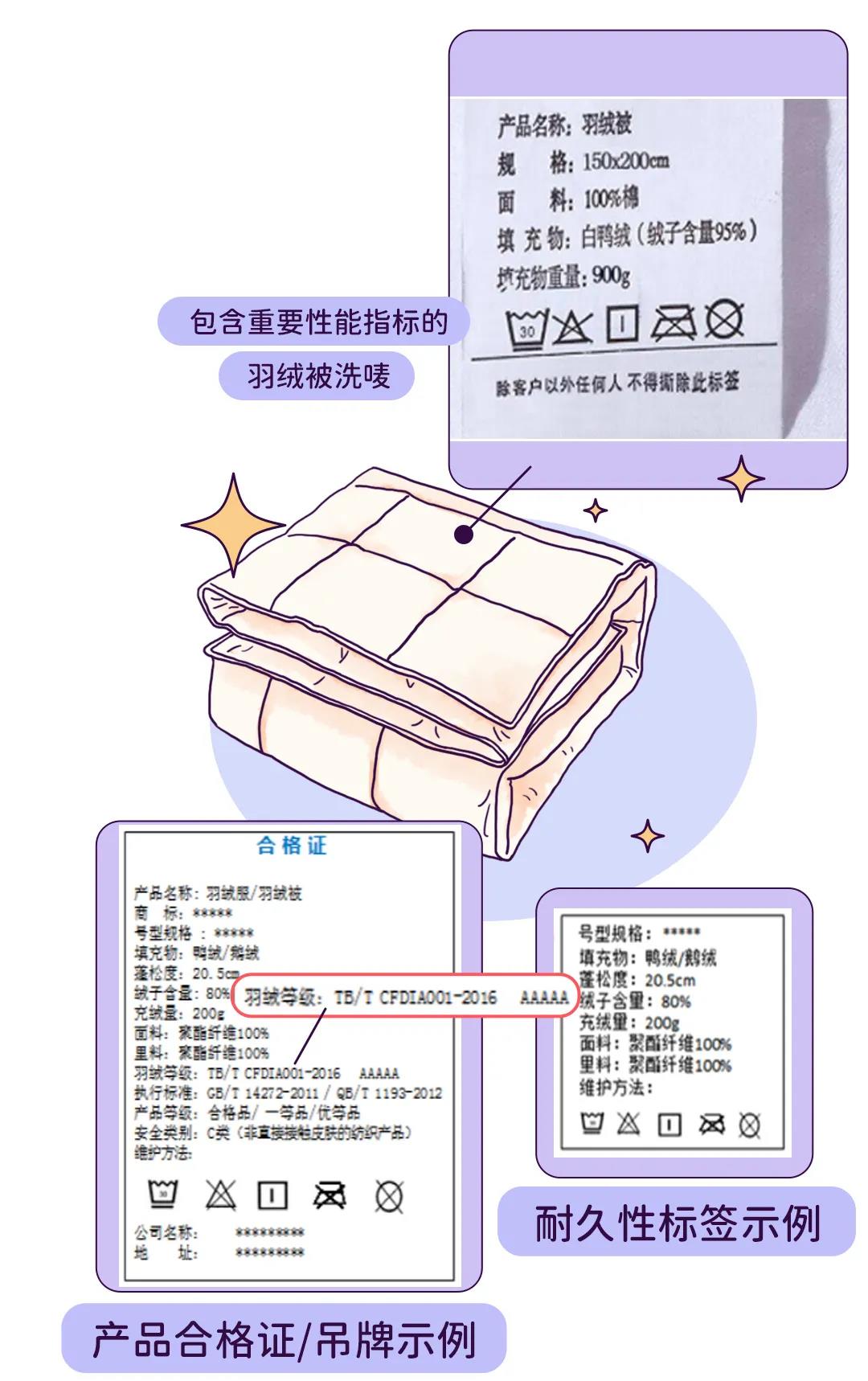 如果产品执行羽绒分级标准,消费者也可查阅吊牌和洗唛,按需购买。