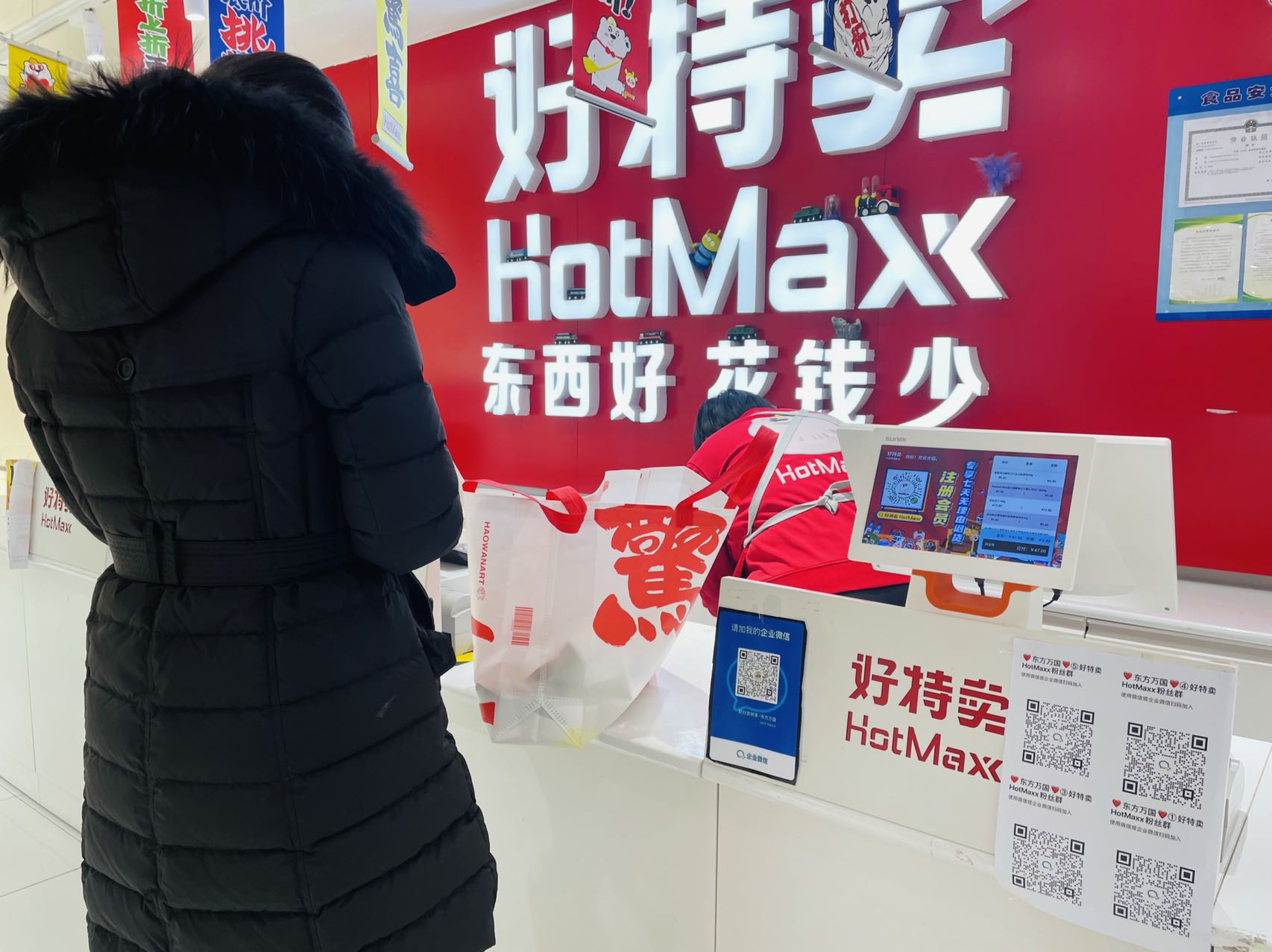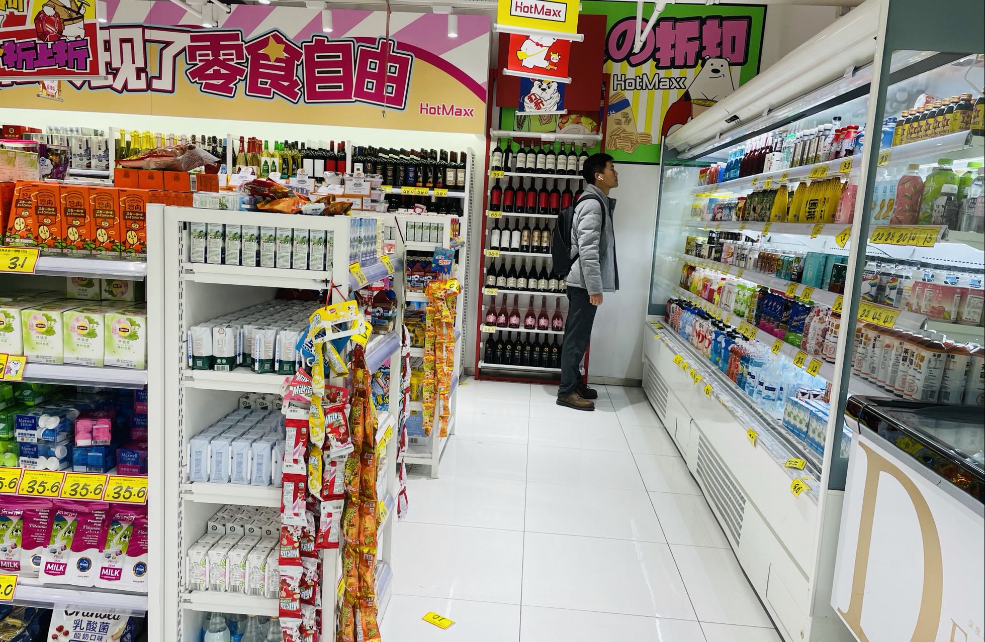 在店里逛的时候,有几个店员正在加紧拆箱上架新到的货品。店员说,店铺里的货卖得很快,上架更新也快。至于货品的来源,他说有一些是从大型商超运过来的,其他则不清楚。