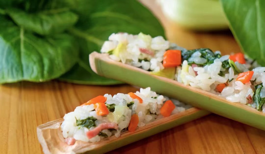 你心心念念的传统土灶,就在这里!这一次,乐稻心田精心准备了竹中美食——竹筒菜饭。采用本地珠溪玉谷大米,搭配优质火腿、田间青菜、胡萝卜等,混合置于竹筒内,密封蒸煮至熟,使米香、肉香、菜香与竹香混合,开盖香气四溢,令人食指大动!