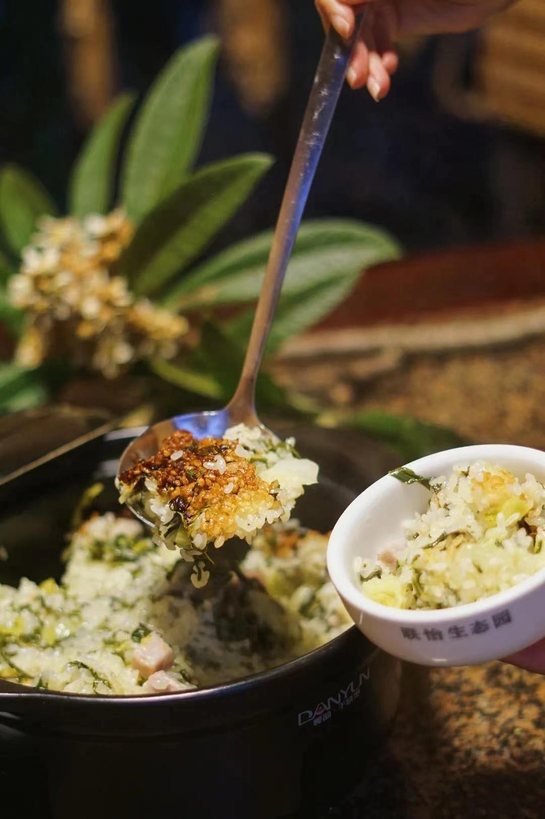 薄荷香农庄推出的菜饭,就地选用当季鲜美无比的农家食材,以农庄种植的“绿色食品”大米,搭配新鲜摘取的青菜,加拌熬煮的猪油炒制而成。米香菜香肉香混合起来,彼此缠绕,唇齿留香。