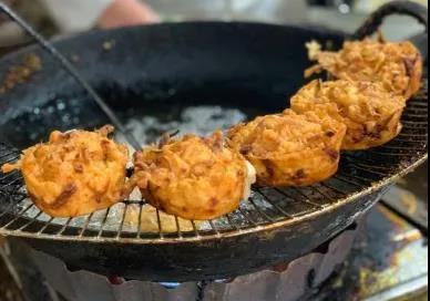不光是上海“土著”,只要是在上海生活过一段时间的人都知道“油墩子”的存在。刚出锅的油墩子外层炸的金黄香脆,内馅萝卜丝又脆又有汁水,味道咸鲜。冬天来上一只,整个人都暖了起来!