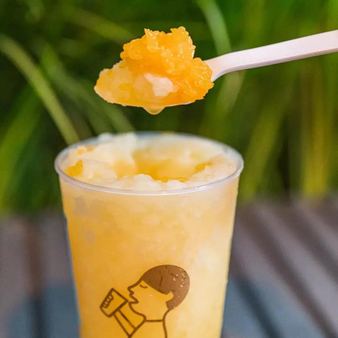 冬季是橘子最新鲜的季节,这杯爆汁大橘可别错过!优选皮薄汁多的蜜橘,手剥现制,粒粒饱满果肉带来爆汁沁甜。甘甜的果汁融合定制绿妍茶汤打出冰沙,满杯散发出馥郁茉莉香。