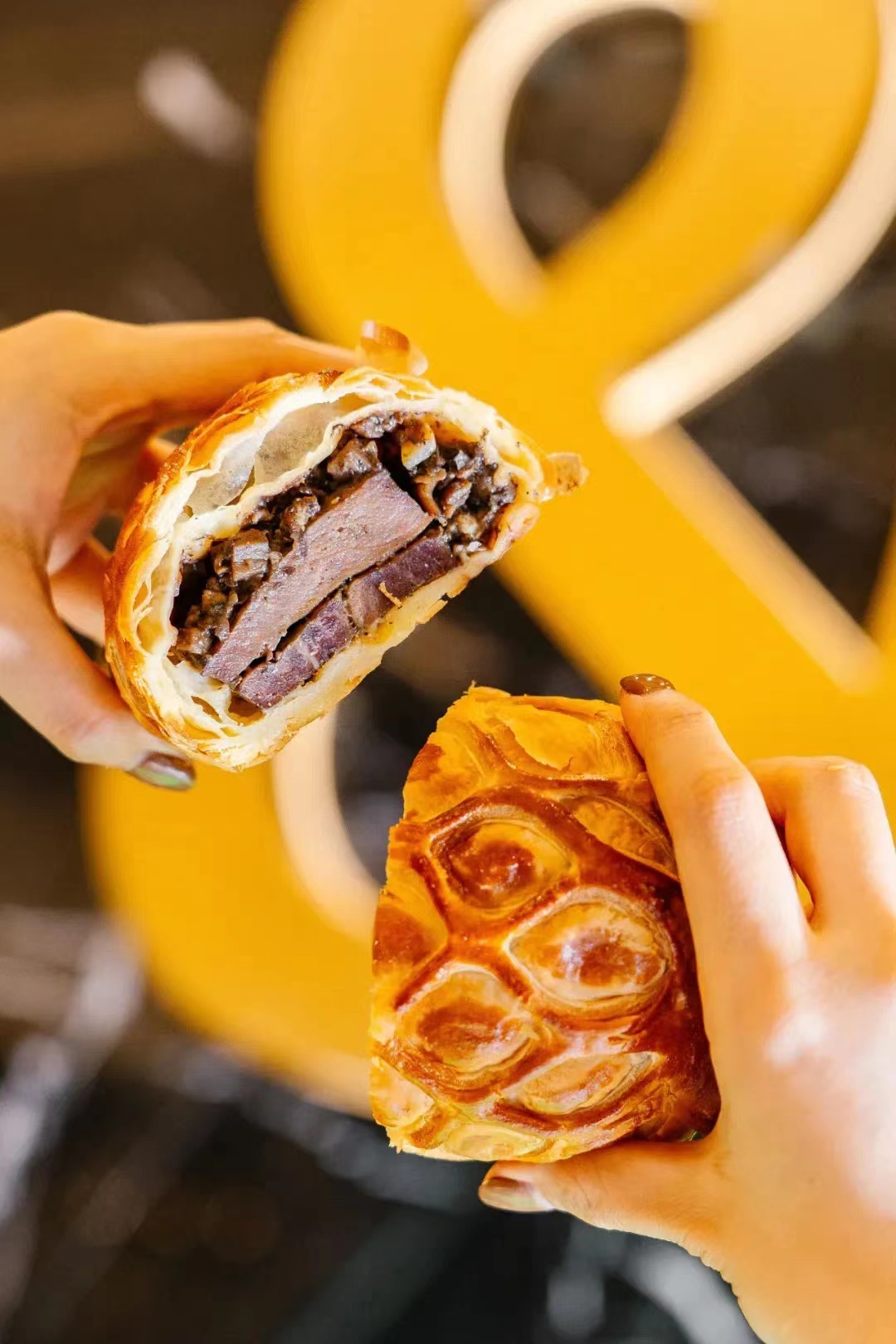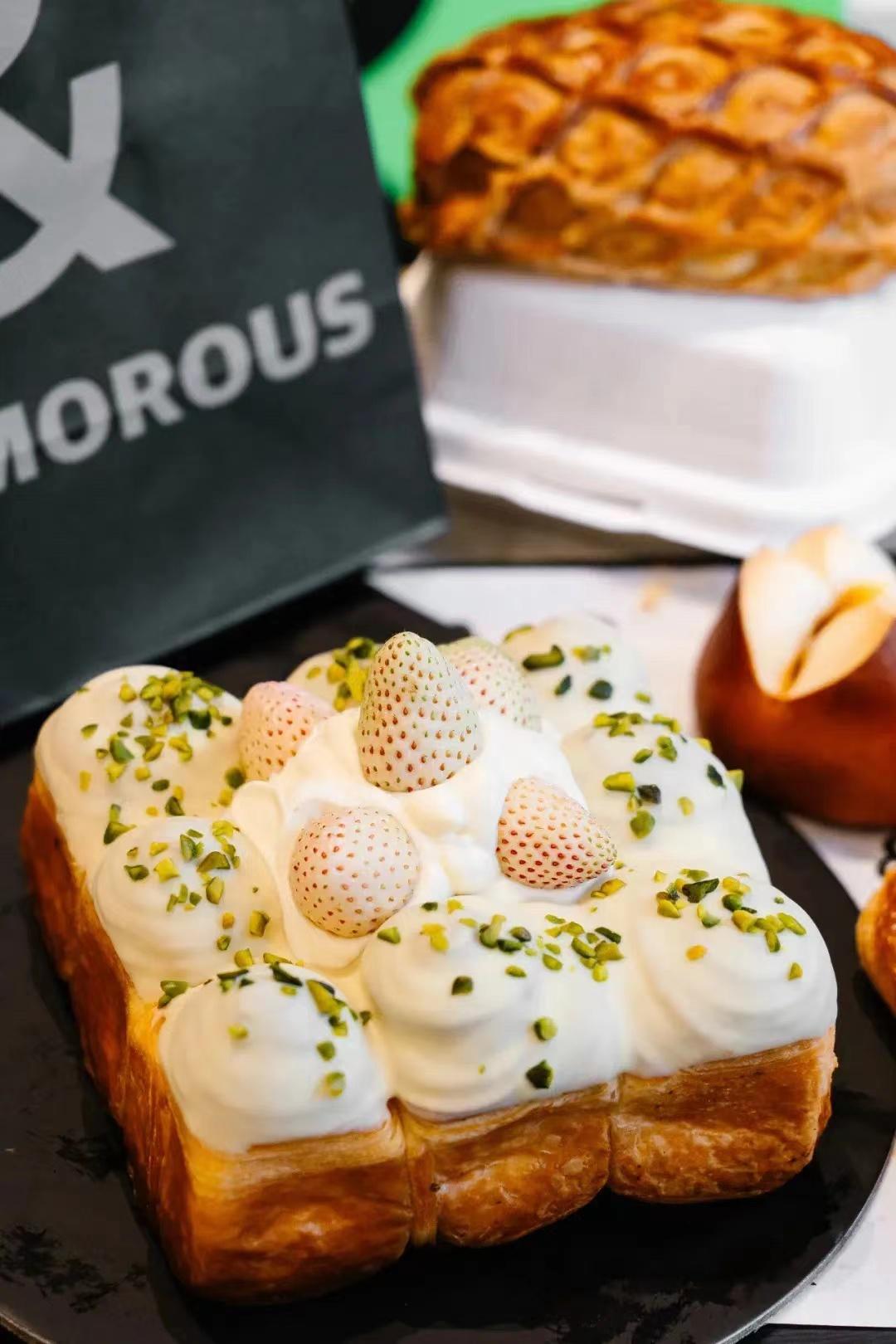 还有由草莓中的“爱马仕”白草莓制成的草莓火山牛角包和原创惠灵顿牛排牛角包,都是要掐表排队购买的存在!