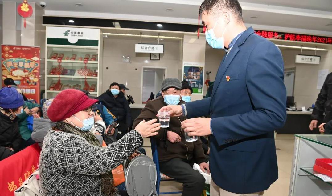 由于户外寒冷,工作人员早早将市民请入店内,提供座椅、热水、饼干等物资,供他们休憩。
