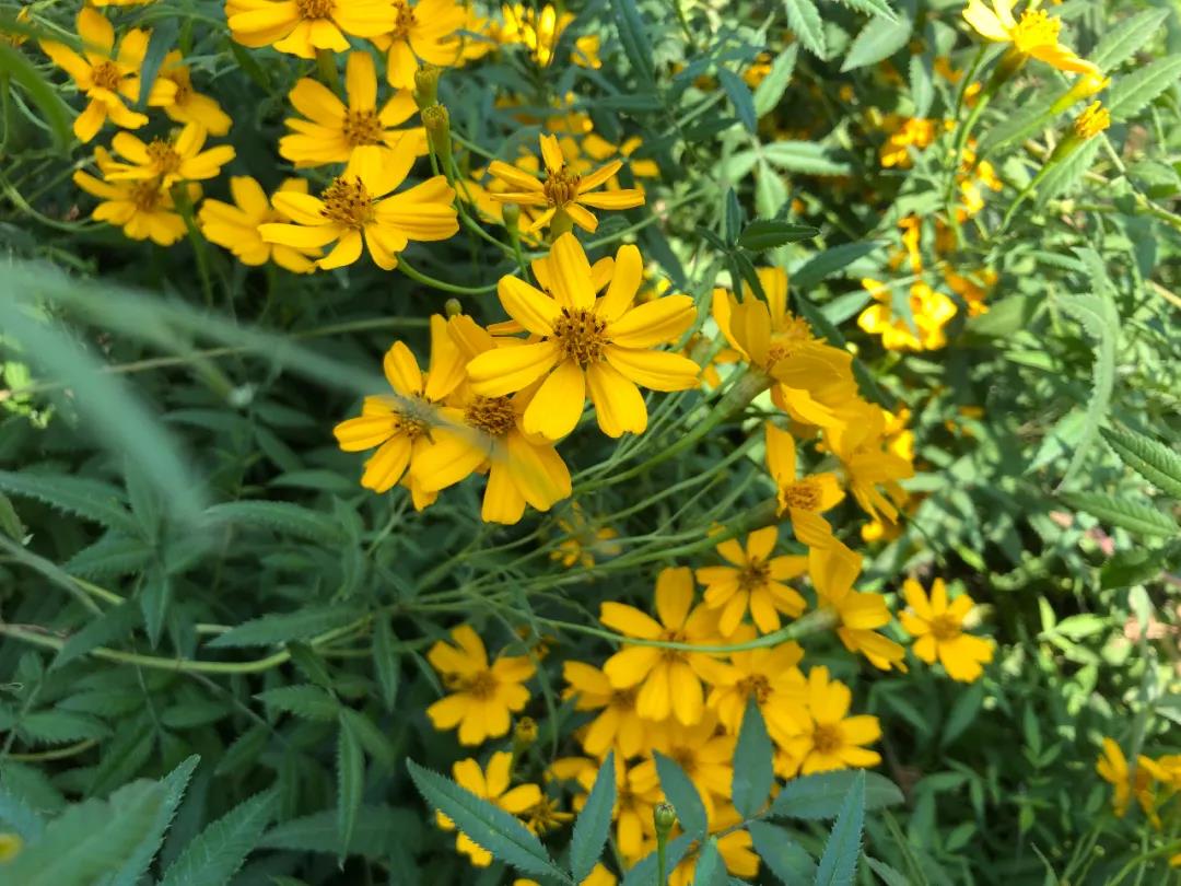 芳香万寿菊,菊科万寿菊属草本植物,万寿菊又名臭芙蓉,喜光、耐寒,生性强健。叶羽状复裂,管状花花冠黄色。