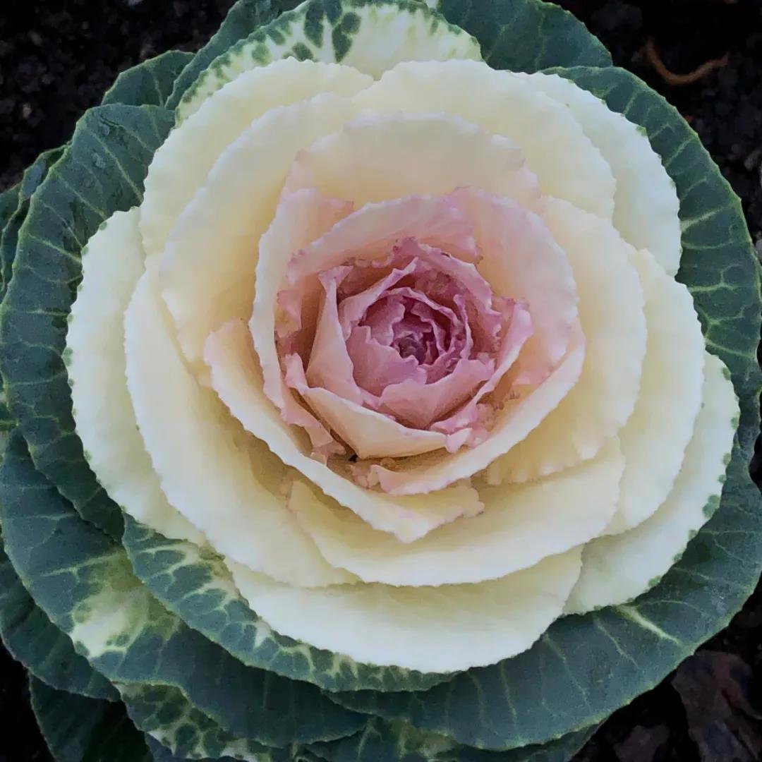 羽衣甘蓝,又名叶牡丹,十字花科芸苔属草本植物。羽衣甘蓝其实就是我们常说的甘蓝,也就是卷心菜的一个变种。只不过它的叶子呈皱缩,没有团团包裹成球状,有长长的叶柄,叶子的颜色非常丰富,座状叶丛,层层叠叠,且具有较长的观赏期,经冬季低温,于翌年抽薹开花、结实。观叶观花都有较好的景观效果。