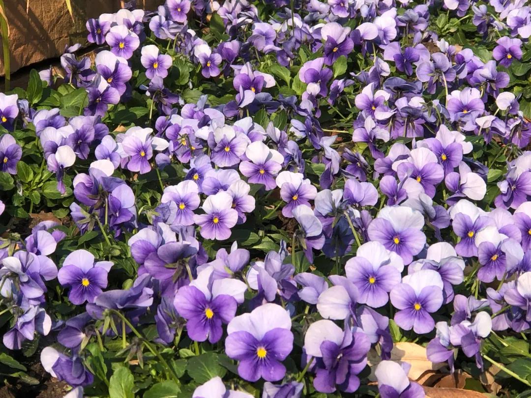 角堇,堇菜科堇菜属多年生草本。花色丰富,有红、白、黄、紫、蓝等颜色,常有花斑,有时上瓣和下瓣颜色不同。原产北欧。是冬日里重要的观赏花卉,也是塑造花坛、花境、立体植物造型的优良材料。主要应用的有小钱币、果汁冰糕、美田、珍品等品系。