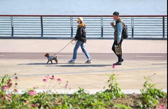 在狗狗运动区范围内,可以松开牵引绳,但是主人还是需要看管好自家的毛孩子。园内其他区域则需要佩戴牵引绳。在这里,可以欣赏浦江两岸风光,还可以和狗狗雕塑同框拍照。