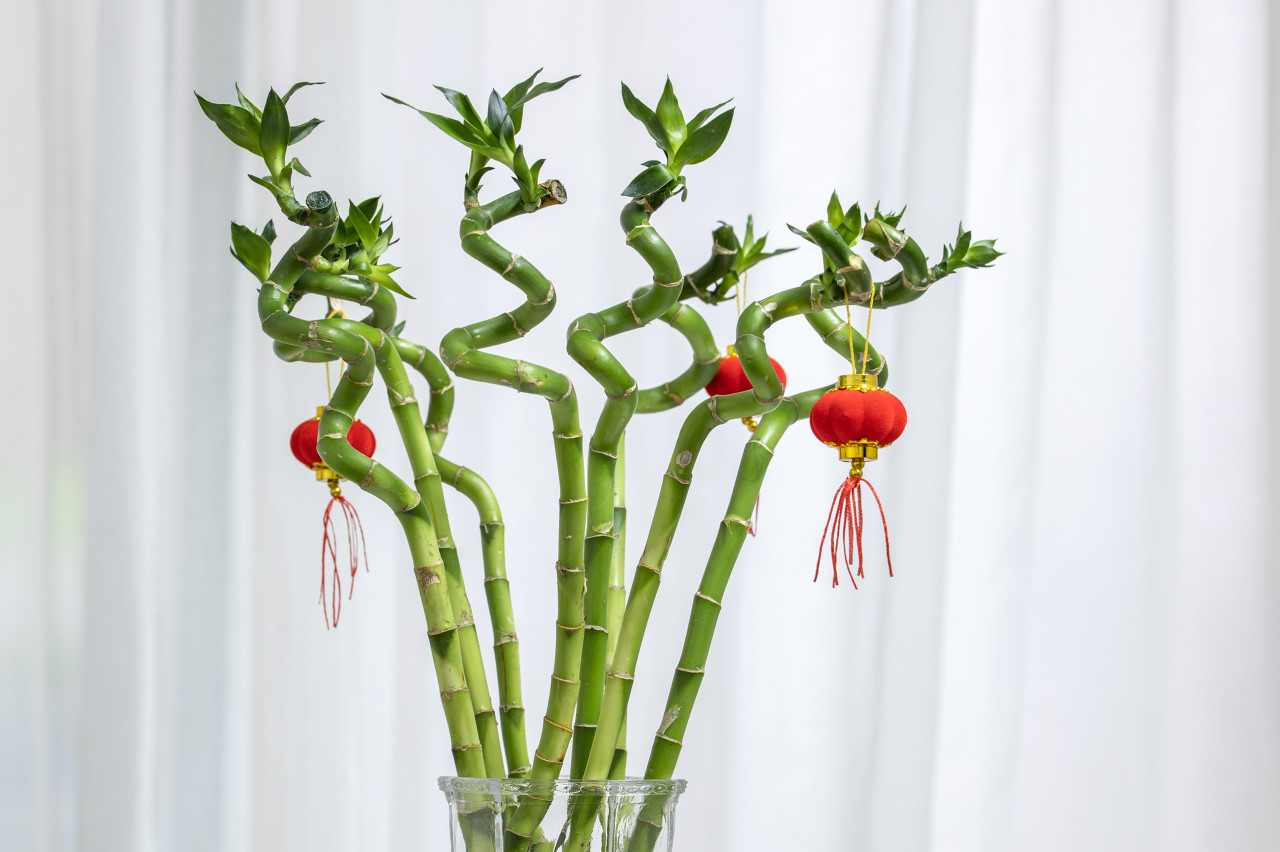 富贵竹的美与它的吉祥名字分不开,但它不是真正的竹,因中国自古就有“花开富贵,竹报平安”的吉祥祝福语,故富贵竹寓意富贵吉祥,节节高升,挂上散发着喜庆气息的中国结,红红火火,喜庆又吉祥。