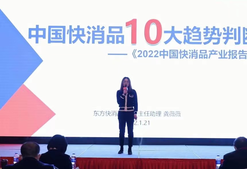 以“展示金品风采,打响购物品牌”为主题的“前瞻2022,第22届中国(上海)快消品高层年会”今天举行。东方快消品中心发布了《2022中国快消品产业年度报告》,报告揭示了2022年中国快消品产业呈现的新趋势。