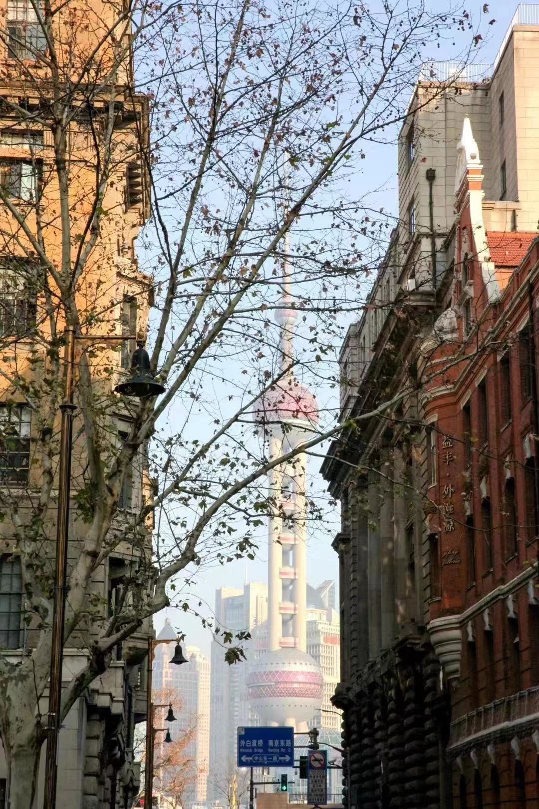 一路往西,找个角度,可以拍摄下东方明珠。古朴西化的建筑与现代的城市地标,形成鲜明的对比,是不少达人推荐的拍照角度。