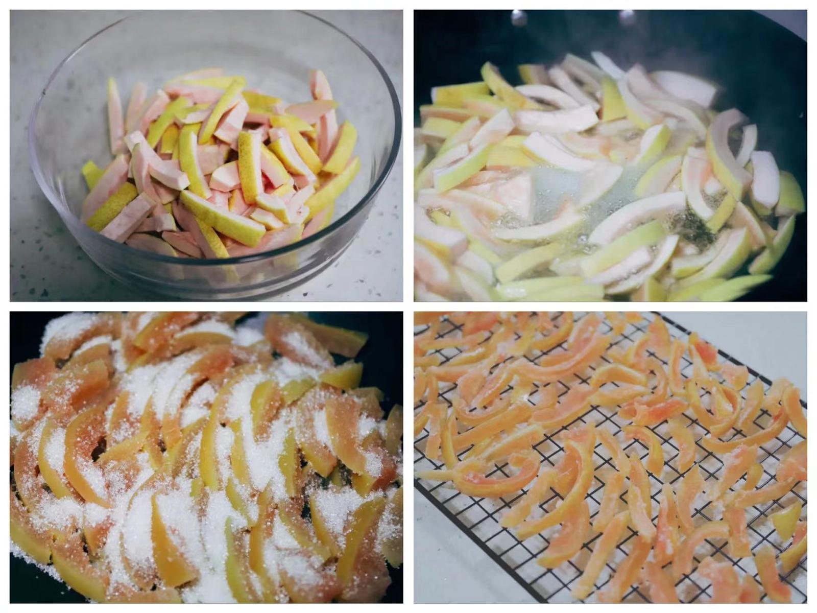 用料:柚子皮、盐、糖适量