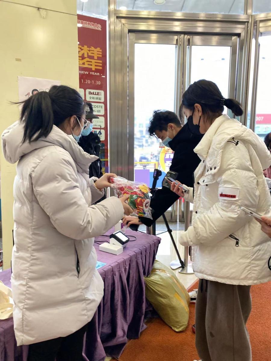 大红福字、虎年公仔、中国结、各种小礼物、鲜花……恢复营业后,顾客纷至沓来,出入口都有专人验证健康码,为顾客测量体温、检查口罩佩戴情况。在收银台、电梯等人群易聚集处,还有工作人员手持消毒水喷壶和抹布,定时清洁消毒,人人都在为防疫而努力。