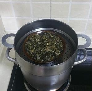 10、兑好的味汁浇入扣碗中,放进蒸锅,水开后蒸1个半小时,焖5分即可