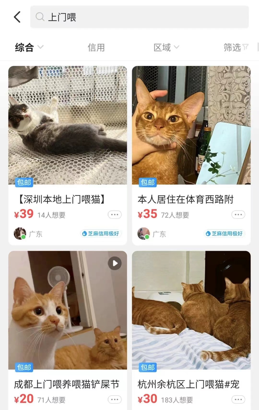 小张喜欢宠物,因此接手了上门投喂一只小猫咪的工作,和猫咪玩耍的同时还能赚钱,一举两得。“所谓上门投喂,不只是到客户家里喂宠物,换粮、换水、铲屎、打扫卫生都在服务范围之内。”小张介绍道,此外根据价格的不同,还可以提供剪指甲、喂药、清理毛发、互动玩耍等服务。
