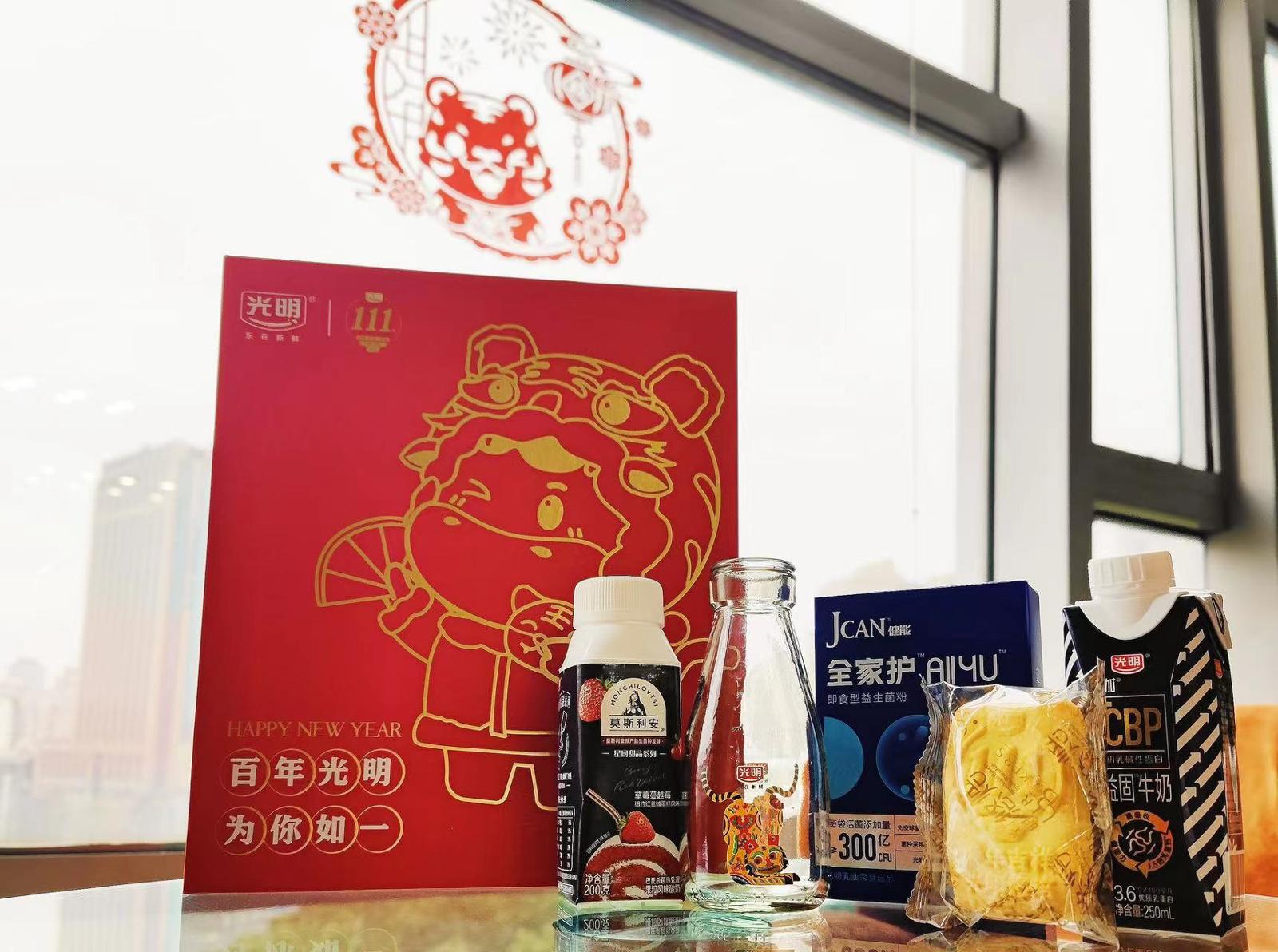 对光明乳业来说,今年是意义非凡的一年,光明乳业迎来历史上的第111周年。瞄准“品质如一,创新如一,温暖如一”的新年目标,光明乳业与时代同频,与城市共振,与消费者同行,向着“做中国最好的乳制品企业”的目标奋力前进。在牛年新春,光明乳业开展了全城寻“牛人”活动,在农历牛年的第一天为最“牛”消费者送上“牛年第一瓶牛奶”,让消费者感受满满光明力量。今年,伴随虎年新春的到来,在虎年的第一天,光明乳业延续这份新年的第一份祝福,再次设计了111份虎年定制礼盒,表达对消费者的爱与尊重。