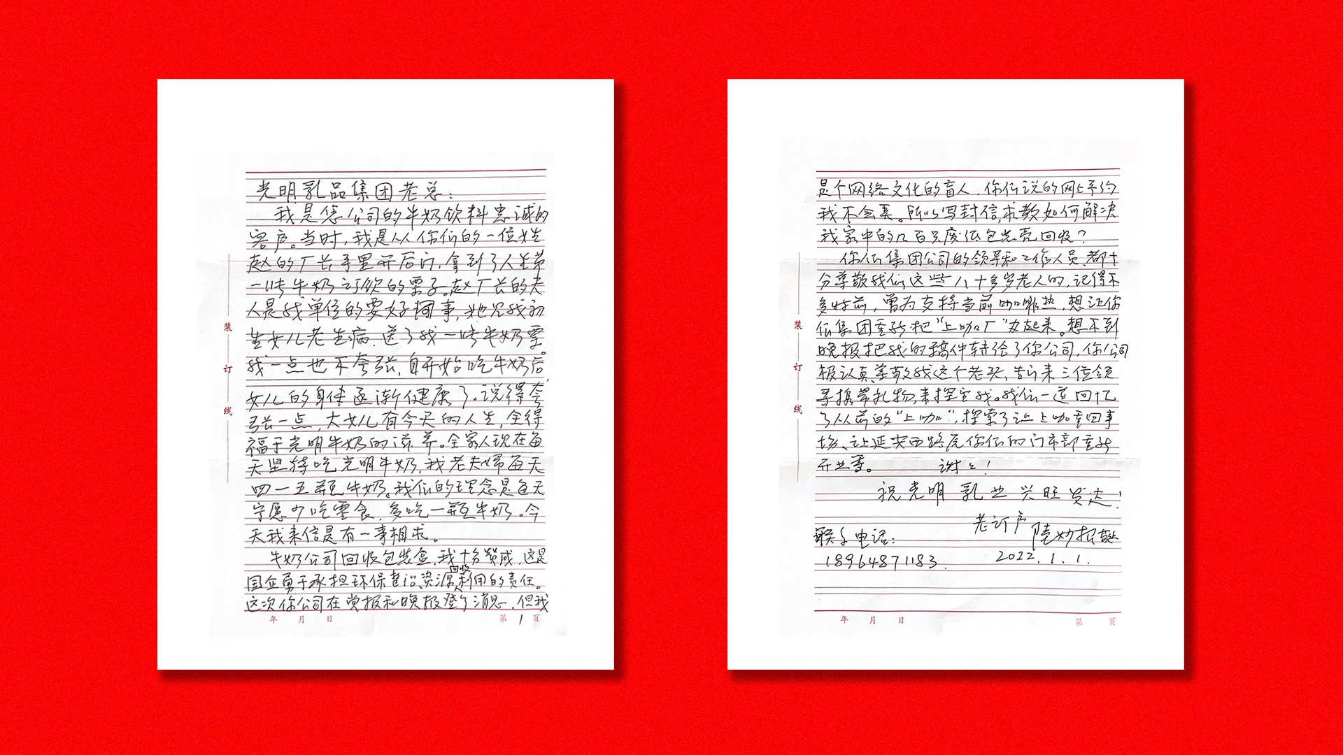 “说得夸张一点,女儿能有今天的人生,全得福于光明牛奶的滋养……我们的理念是每天宁愿少吃零食,多吃一瓶牛奶……”寒冬岁末时节,光明乳业收到一封充满温度的手写感谢信,来信者是年逾八旬的市民陆老先生,他回忆了自家两代人的光明牛奶情缘,更是对光明乳业最新推出的牛奶纸盒回收行动点赞。不过,老人也提出一个小困惑:像他这样的“互联网盲人”,不知道如何线上预约牛奶纸盒回收,怎样参与这一绿色环保行动?
