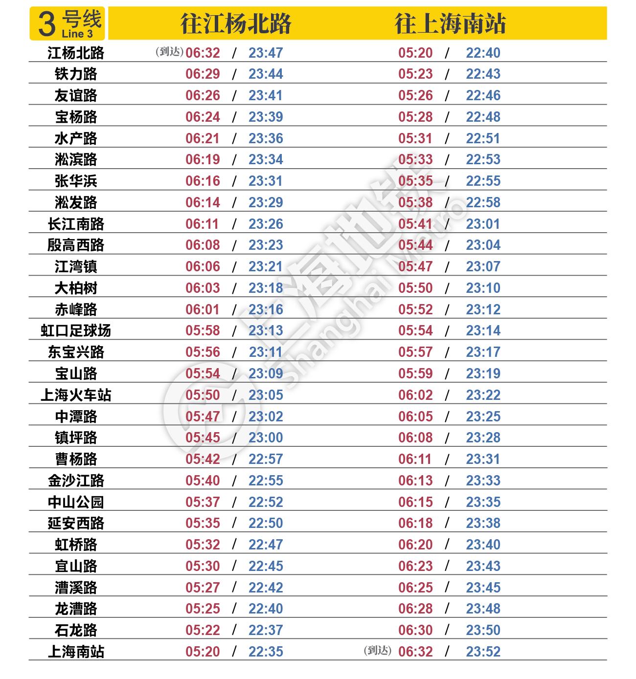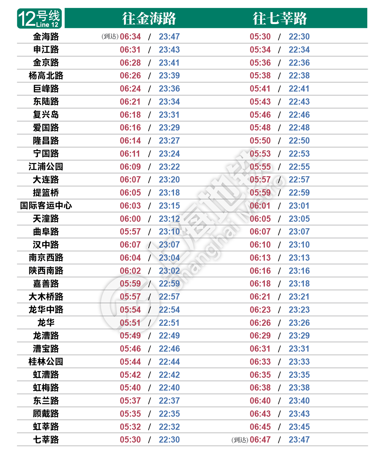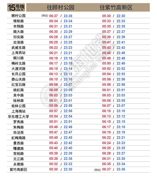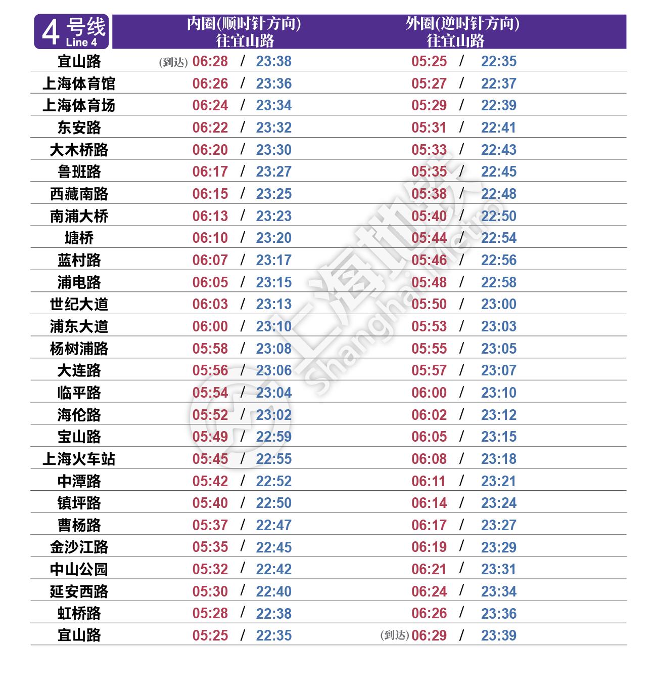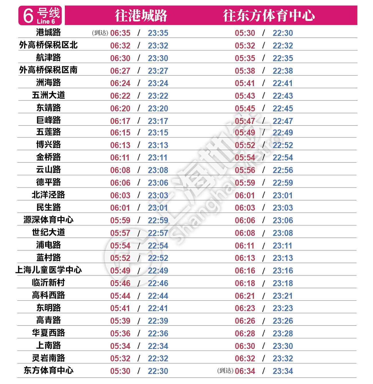 摘要: 上海地铁各条线路首末班车时间表,绿色时刻为延时运营末班车时间。
