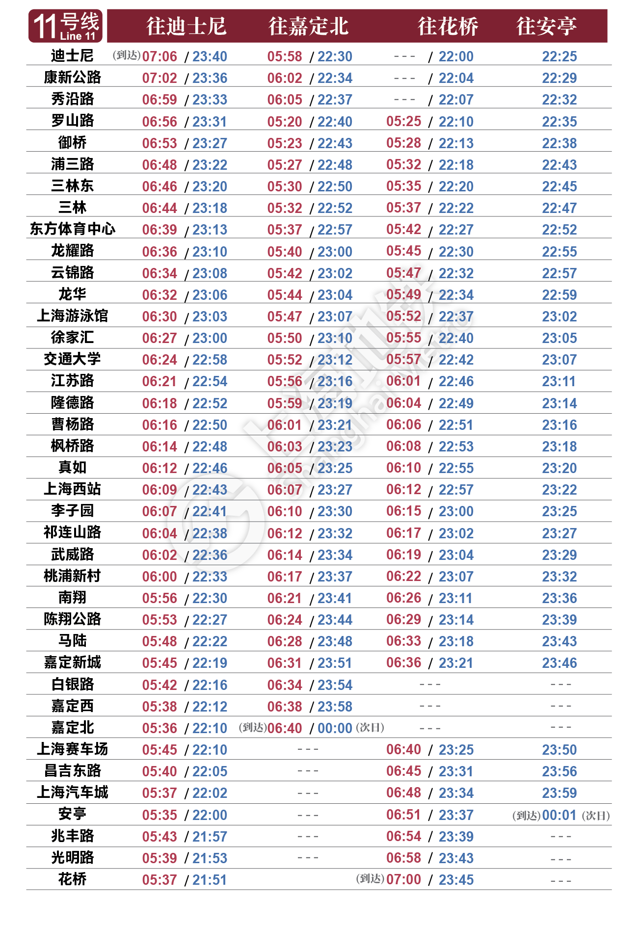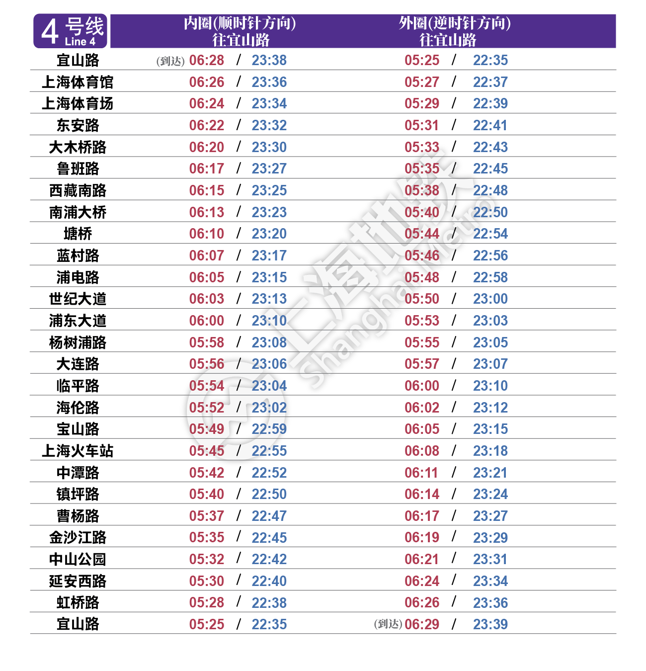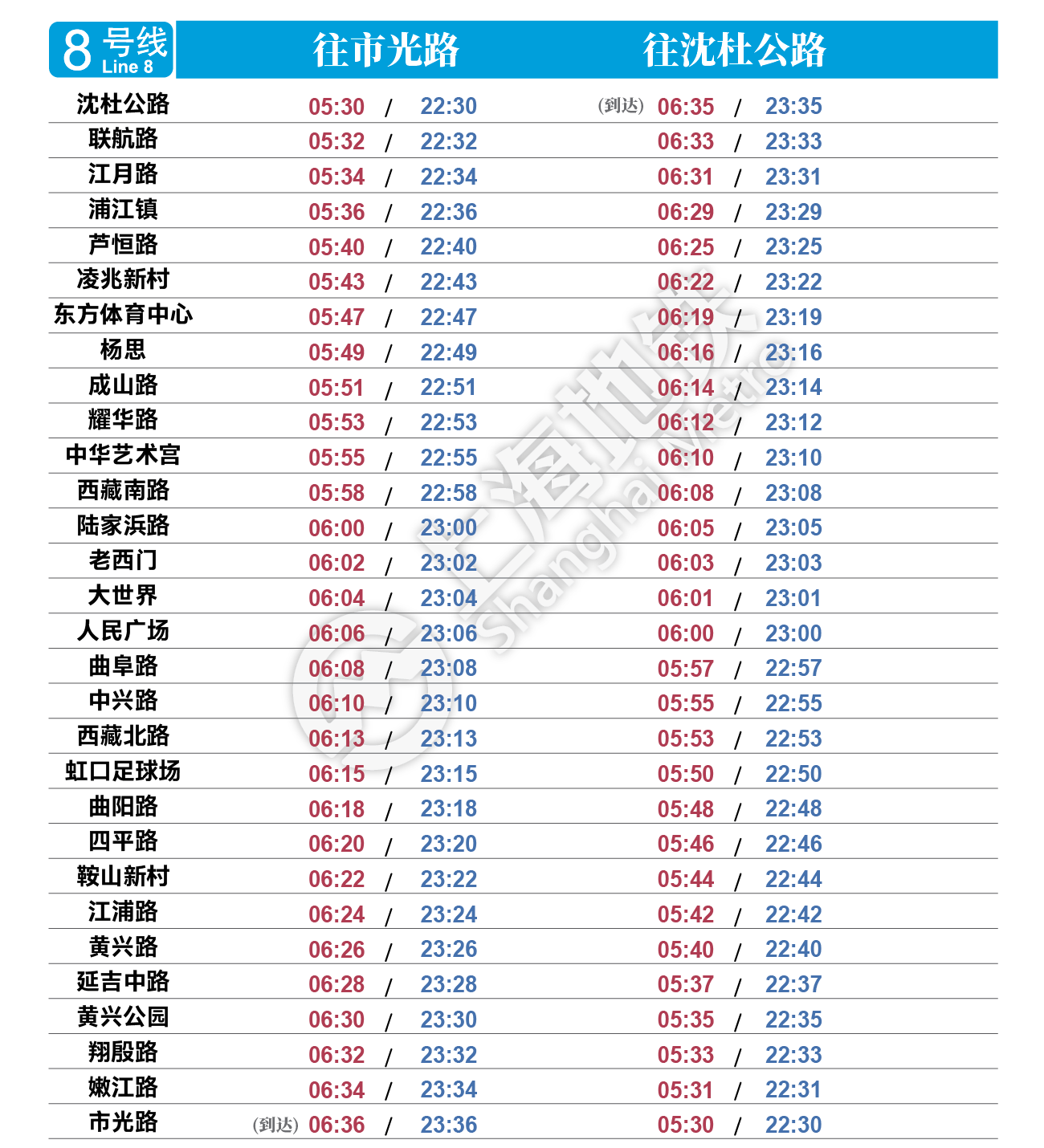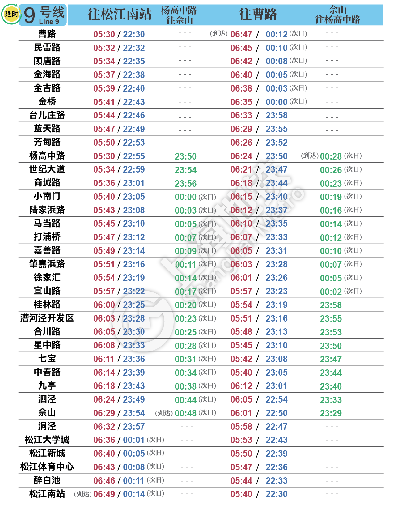 摘要: 上海地铁各条线路首末班车时间表,绿色时刻为延时运营末班车时间。