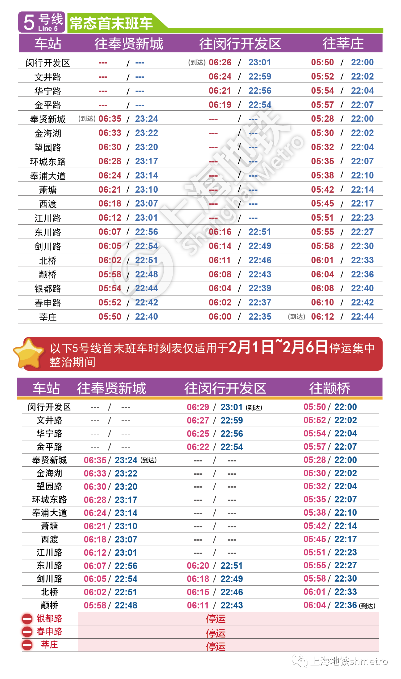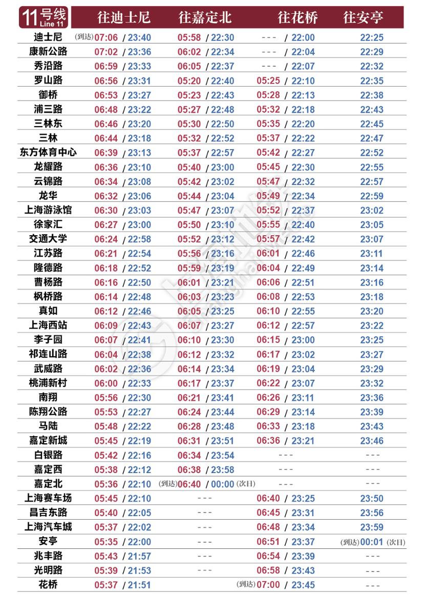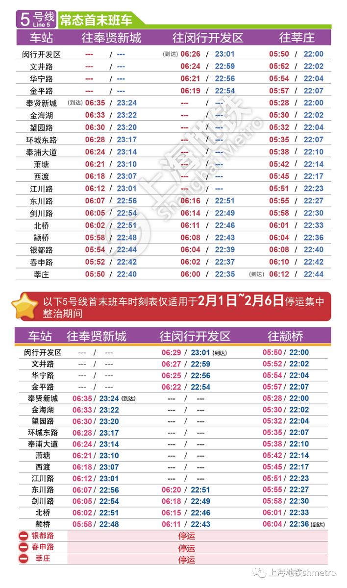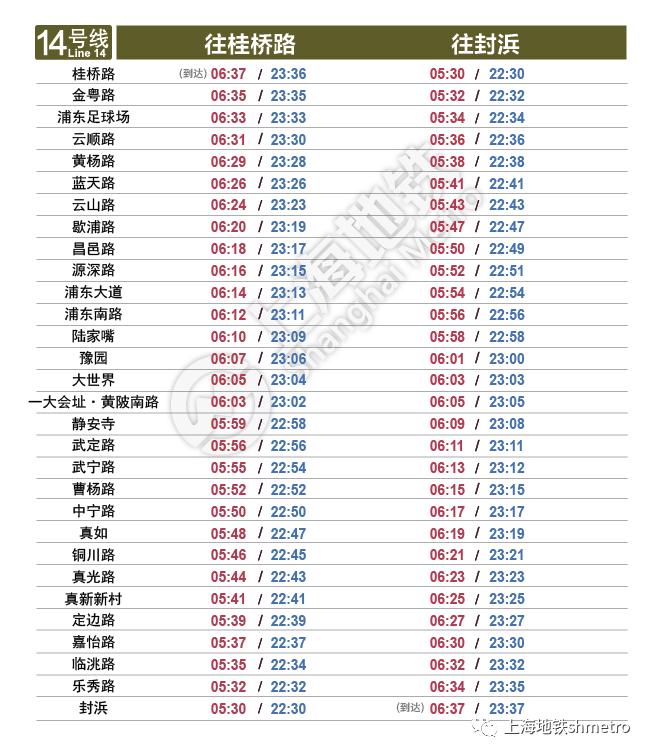 上海地铁全网络最新时刻表,2022年2月1日启用