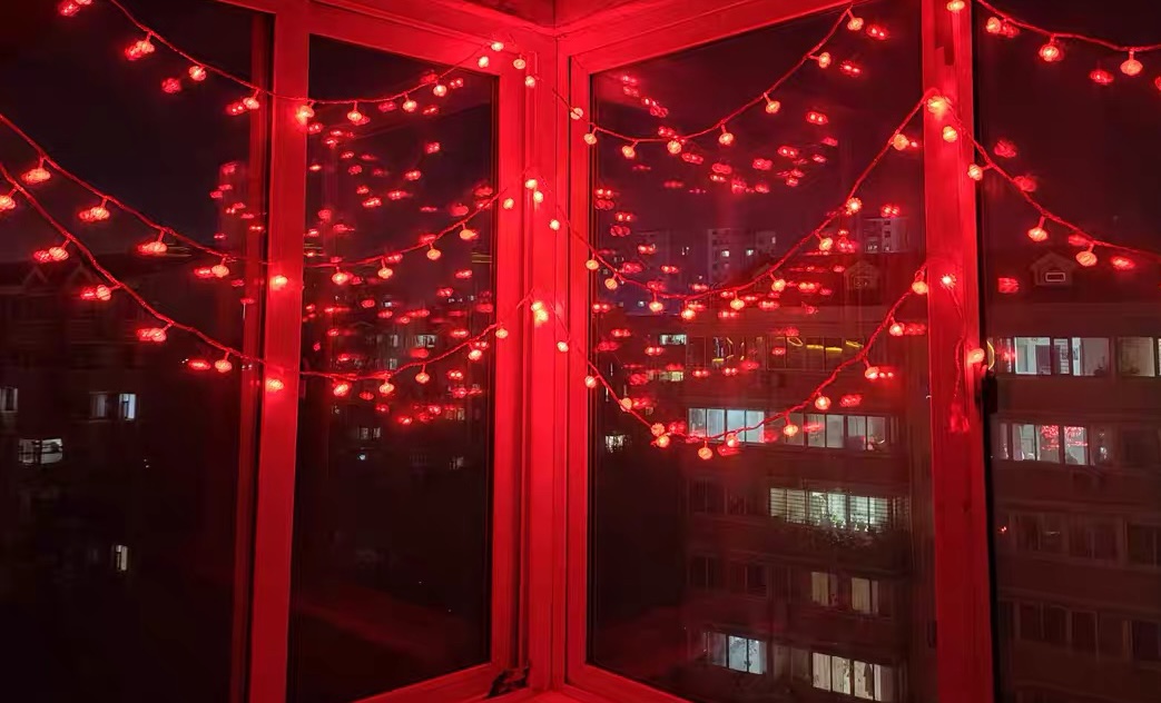 过新年挂红灯笼是传统习俗,在阳台上挂两个红灯笼,可以让整个居室都充满喜气。